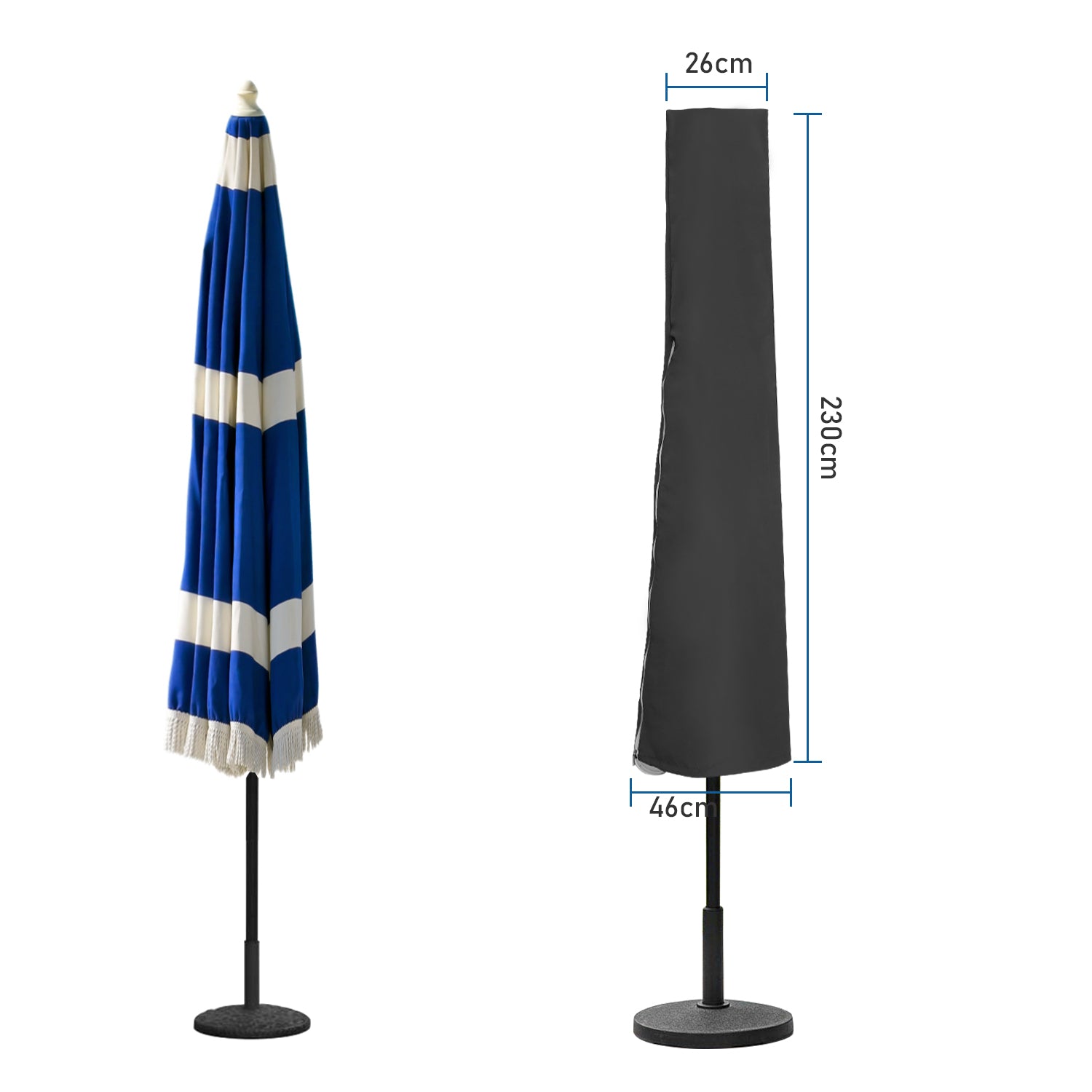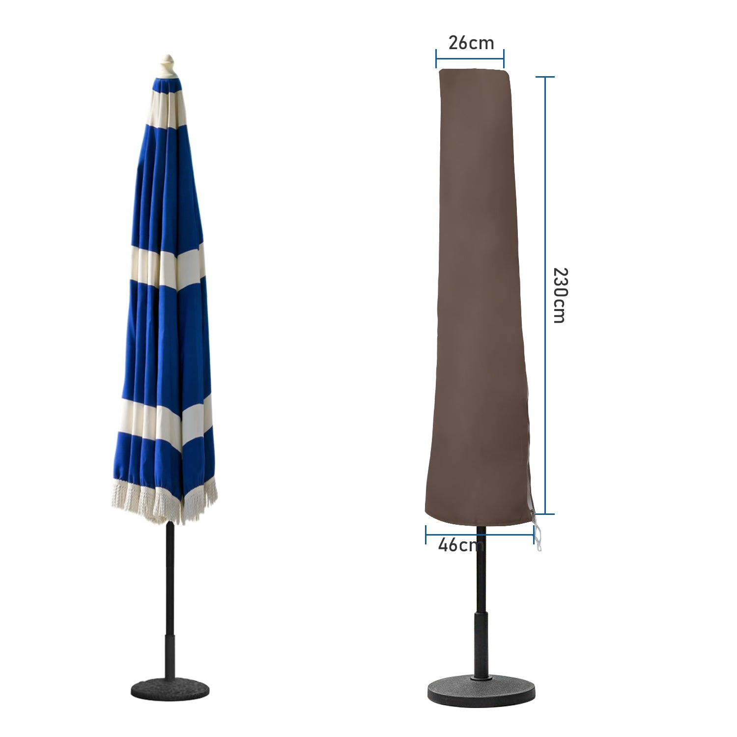 【Wasserdicht】Die Sonnenschirm-Schutzhülle besteht aus 100% Polyesterfaser. Die Struktur des Materials gewährleistet eine hohe Flexibilität und Massenverwendung. Die hervorragende Wasserdichtigkeit stellt sicher, dass sie unter schwierigen Wetterbedingungen wie Regen, Schnee, Frost usw. nicht schrumpft,verblasst oder deformiert