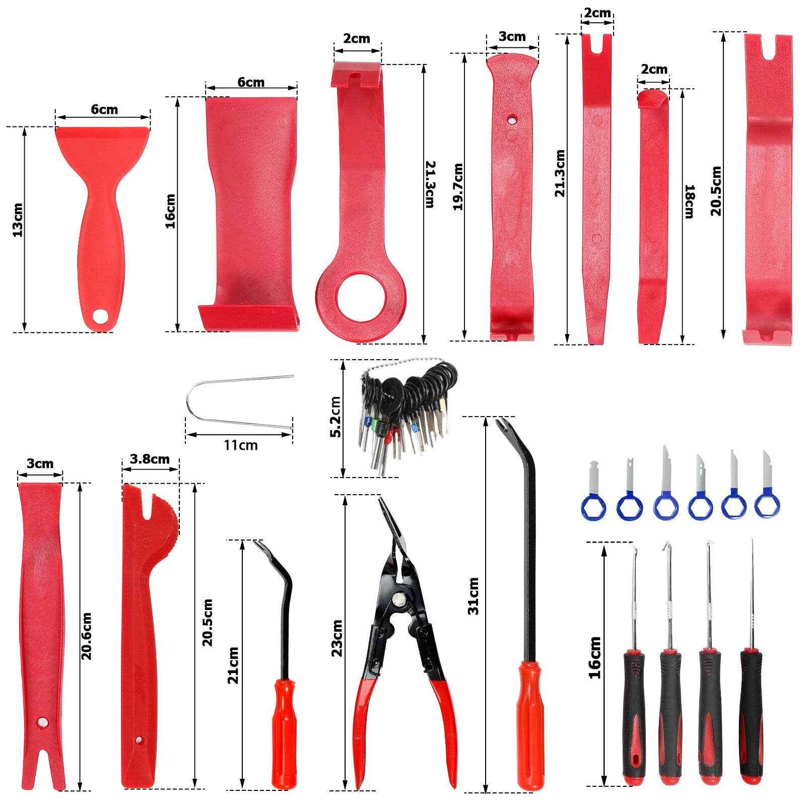 【Multifunktional & Universal】 Es enthältet fast alle für Demontage benötigte Werkzeuge. Perfekt für Demontagen von Auto Audio/Radio, Instrumentenblöcke usw. Multifunktionaler Werkzeug Kasten passt auf alle Modelle Autos auf dem Markt.