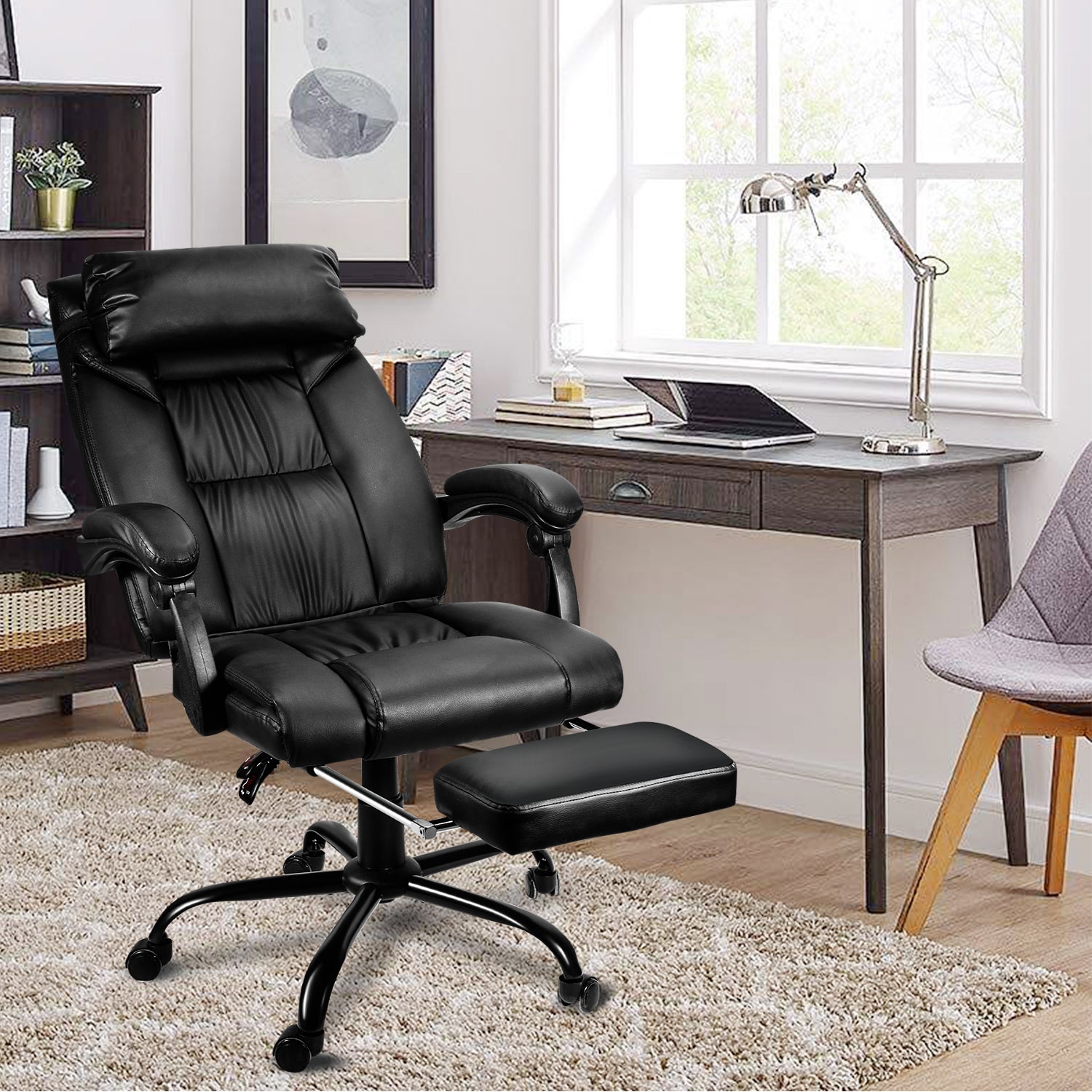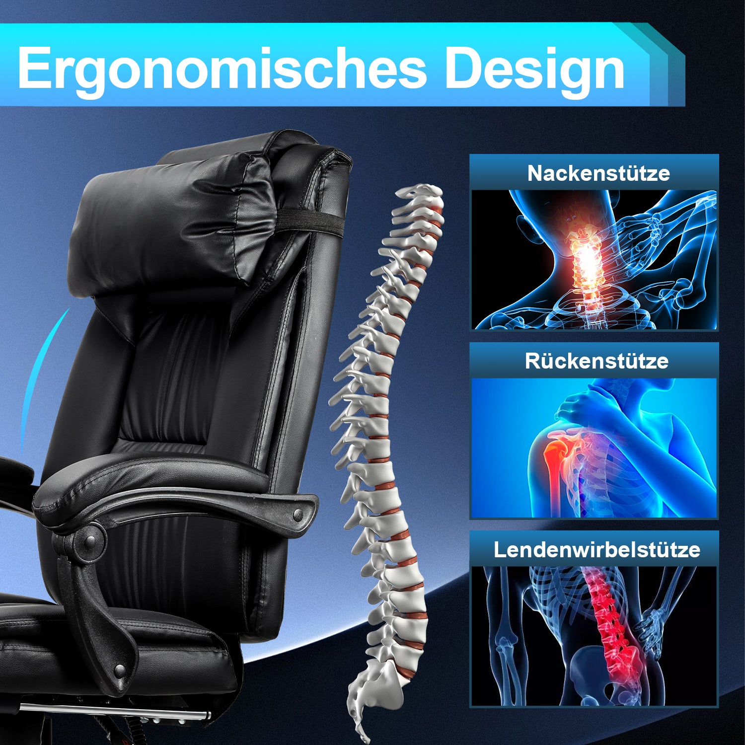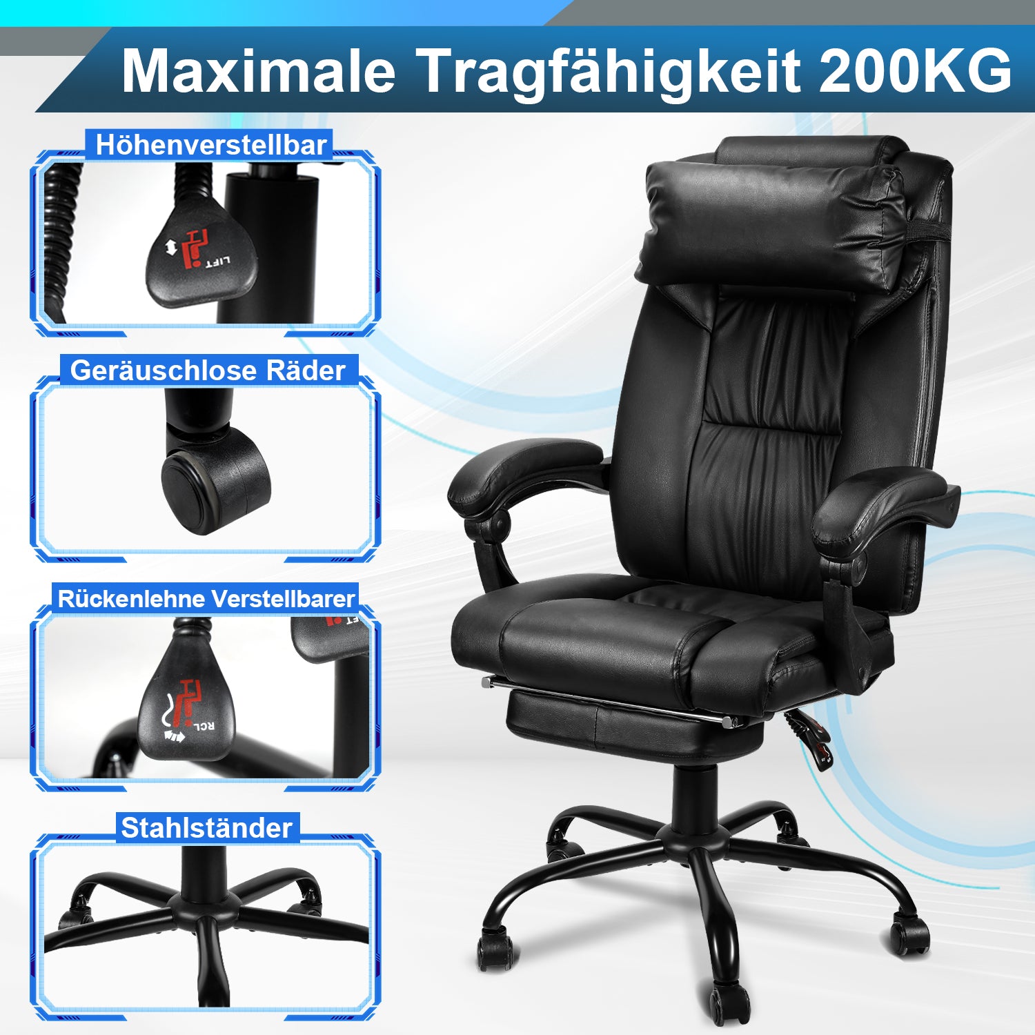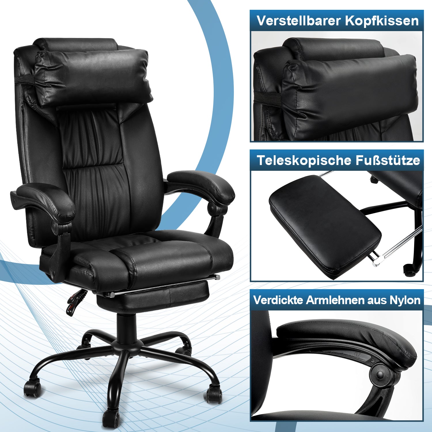【EINSTELLBARES DESIGN】Das verstellbarer Kopfkissen und die teleskopische Fußstütze bieten eine bessere Kopf- und Fußstütze für eine optimale Komforthaltung; die geräuschlosen Räder sorgen für eine ruhige und angenehme Bewegung.