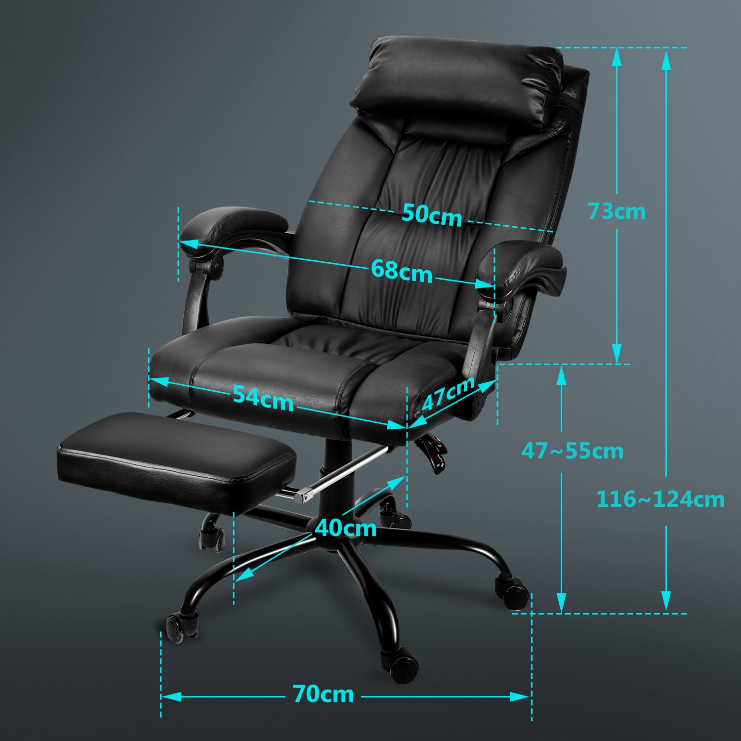 Länge der ausziehbaren Fußstütze: 40 cm
