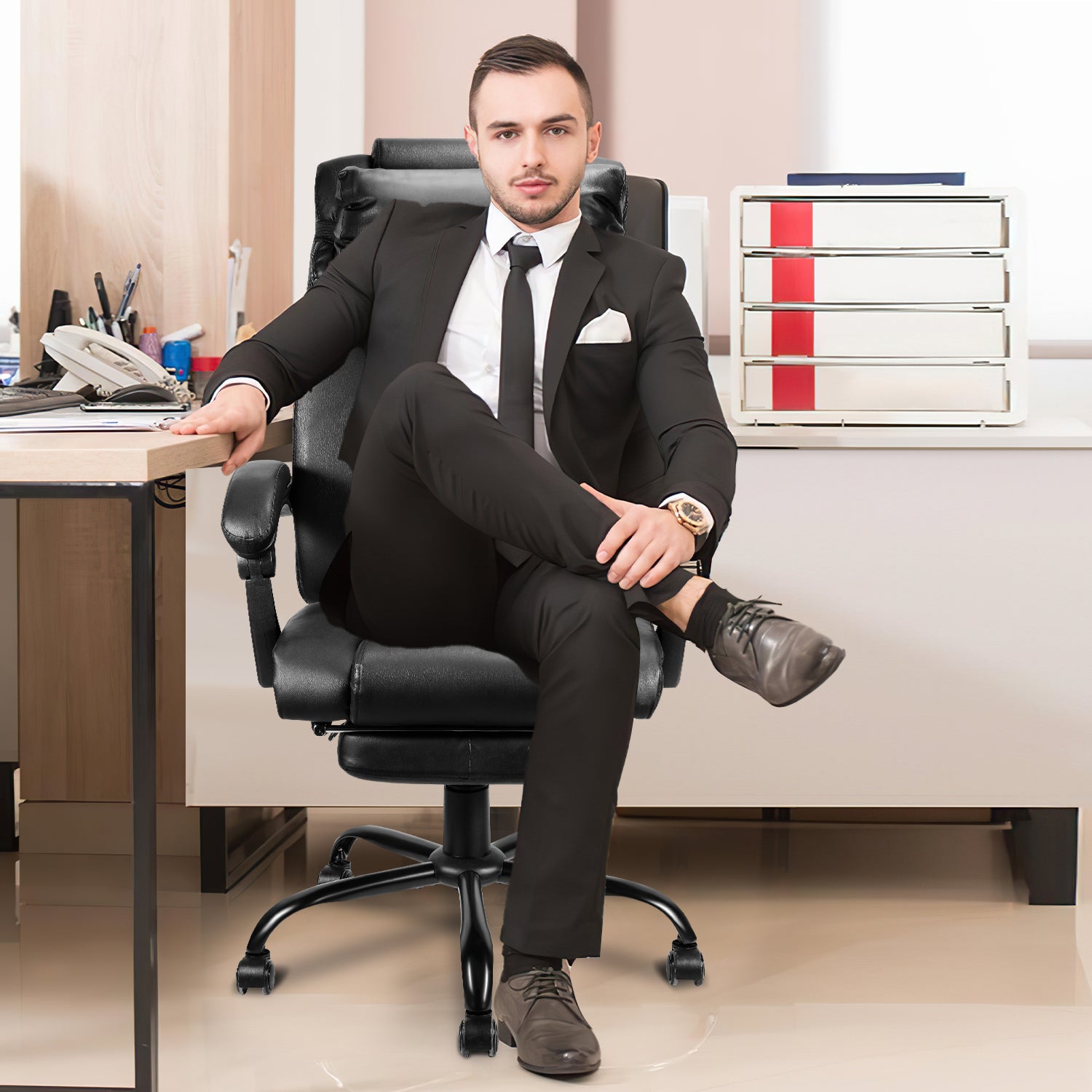 【Hochwertige Materialien】Der hochverdichtete Rückprallschaum sorgt für Langlebigkeit und Elastizität nach längerem Gebrauch; PU-Leder ist nicht nur umweltfreundlich und pflegeleicht, sondern bleibt auch lange Zeit zart und glänzend, langlebig.