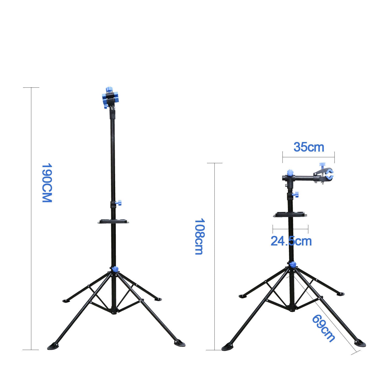 Verstellbare Klemme: Die um 360 Grad drehbare Klemme kann Ihr Fahrrad in jeder Position fixieren, zwei Drehpunkte und eine Höhenverstellvorrichtung bieten maximale Flexibilität für die Fahrradwartung, und die Klemme verfügt über einen Gummigreifer Beschädigt Ihr Fahrrad nicht.