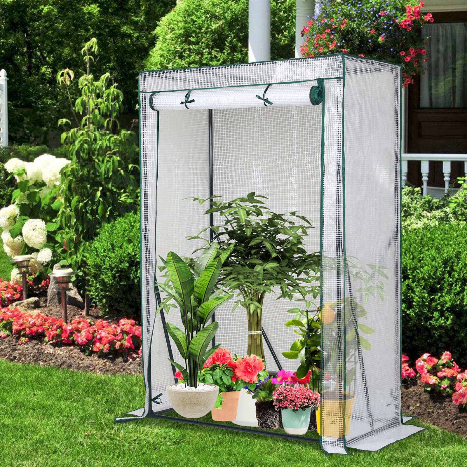 Unser Gewächshaus kann Ihre Pflanzen im vor Regen, Wind, leichtem Schnee, Hochwasser oder Frost geschützen. Zu allen Jahreszeiten einsetzbar.