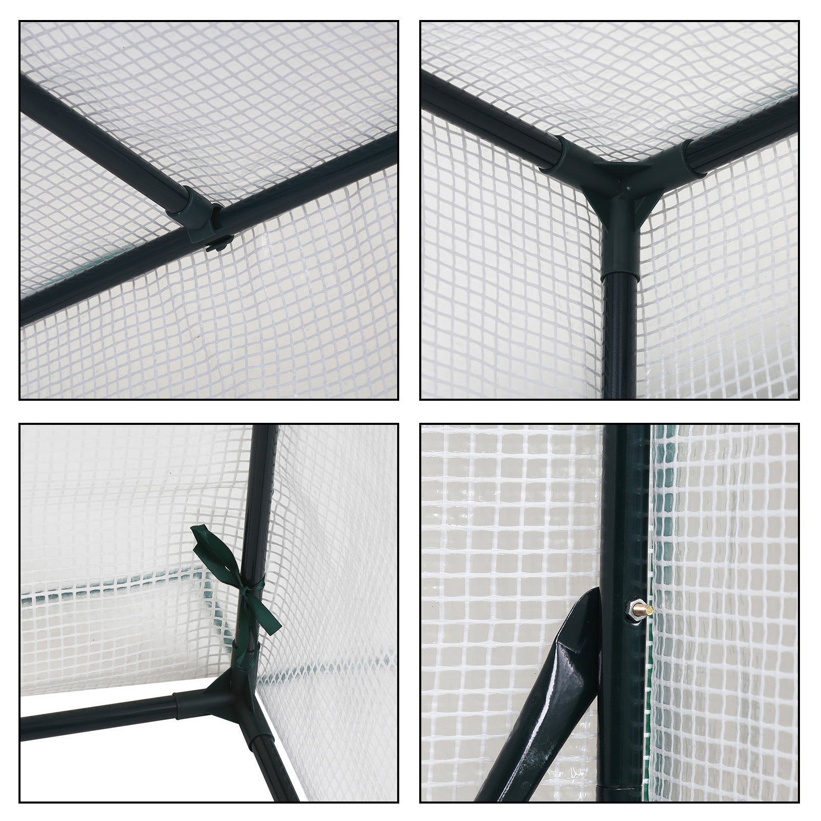 140 g / m² PE-Abdeckung mit Reißverschluss-Rolltüren und Fenstern: 100% wasserdicht, hervorragender UV-Schutz, die Sonne scheint durch die Abdeckung und bietet eine warme und feuchte Umgebung. Das begehbare Design bietet ausreichend Platz einen einfachen Zugang und gute Belüftung.