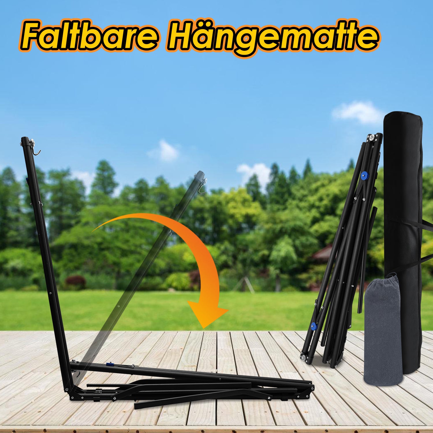 GUTE STRUKTURELLE STABILITÄT: Der verdickte Eisenrahmen verbessert die Tragfähigkeit bis zu 150 kg erheblich. Der Hängemattenrahmen ist mit zwei hochwertigen und stabilen Haken ausgestattet, die die Hängematte leicht und einfach befestigen können; der untere Rahmen fügt zwei Stangen für mehr strukturelle Stabilität hinzu.