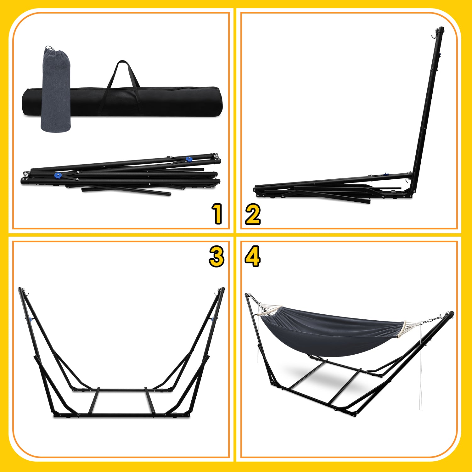 KEINE MONTAGE ERFORDERLICH: unsere Hängematte ist bereits zusammengebaut und faltbar, Sie müssen sie nicht selbst zusammenbauen, sie ist sofort einsatzbereit und wird mit einer zusätzlichen Aufbewahrungstasche geliefert, der Hängesessel mit Gestell lässt sich schnell und einfach zusammenfalten und in der Aufbewahrungstasche verstauen, einfach zu lagern und überall hin zu transportieren.