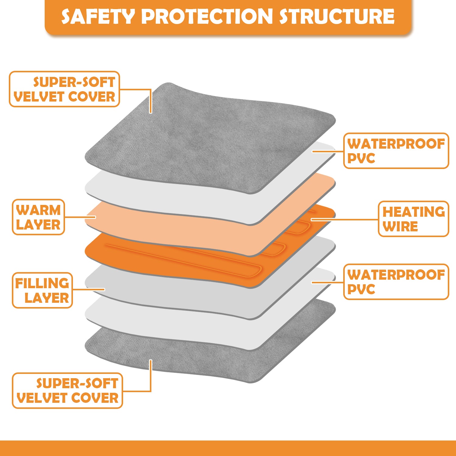 【Überhitzungsschutz für Maximale Sicherheit】Unser Heizkissen ist mit einem intelligenten Überhitzungsschutz ausgestattet, der dafür sorgt, dass Ihr Haustier jederzeit sicher und warm gehalten wird. Sobald die Temperatur den voreingestellten Höchstwert erreicht, schaltet sich der Temperaturregler automatisch ab und reduziert die Temperatur, um Überhitzung zu verhindern.