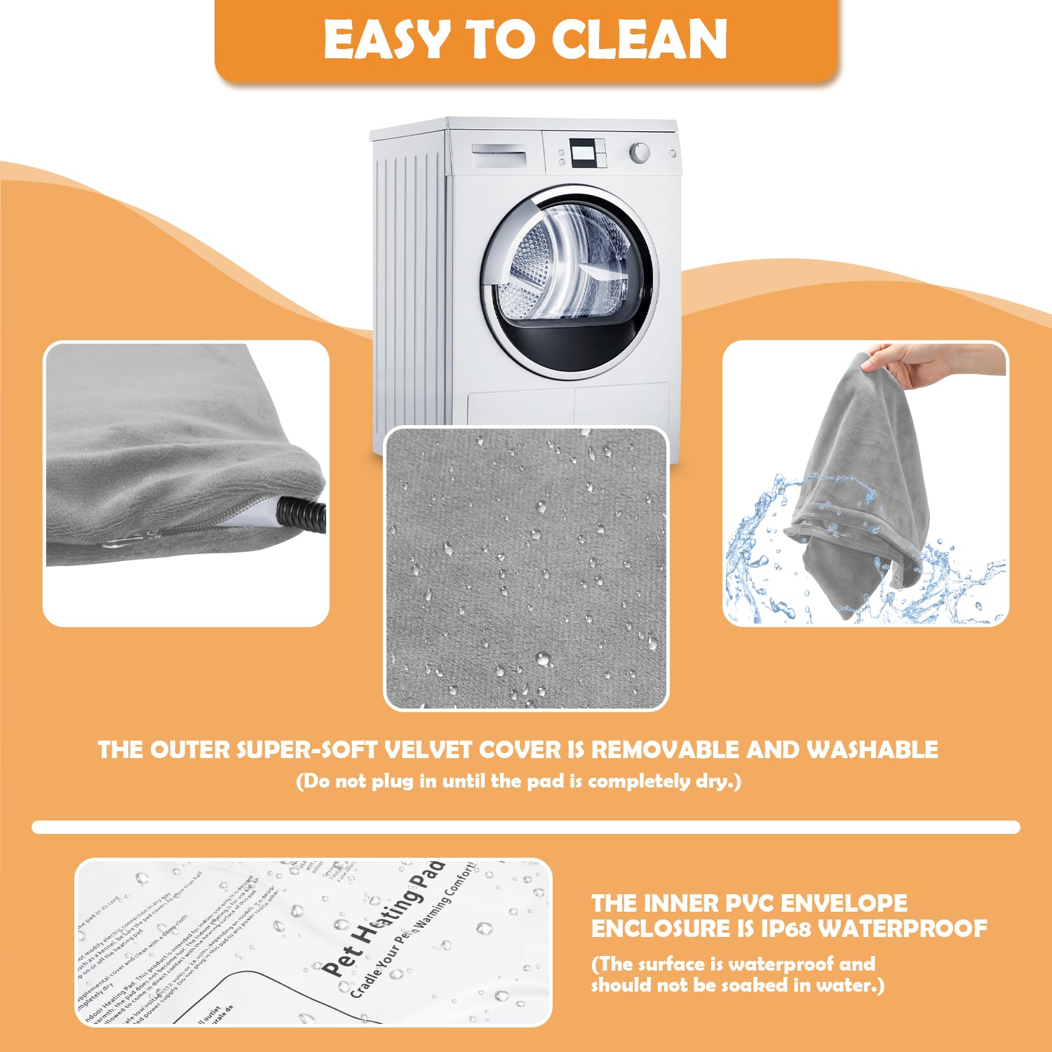 【Leicht zu Reinigen】Die äußere Schicht besteht aus superweichem Samtbezug, so dass Ihr Haustier nicht nur die Wärme genießen kann, sondern auch sehr leicht zu reinigen und zu pflegen ist. Der Bezug ist leicht abnehmbar, um sicherzustellen, dass Sie das Heizkissen sauber und hygienisch halten können.