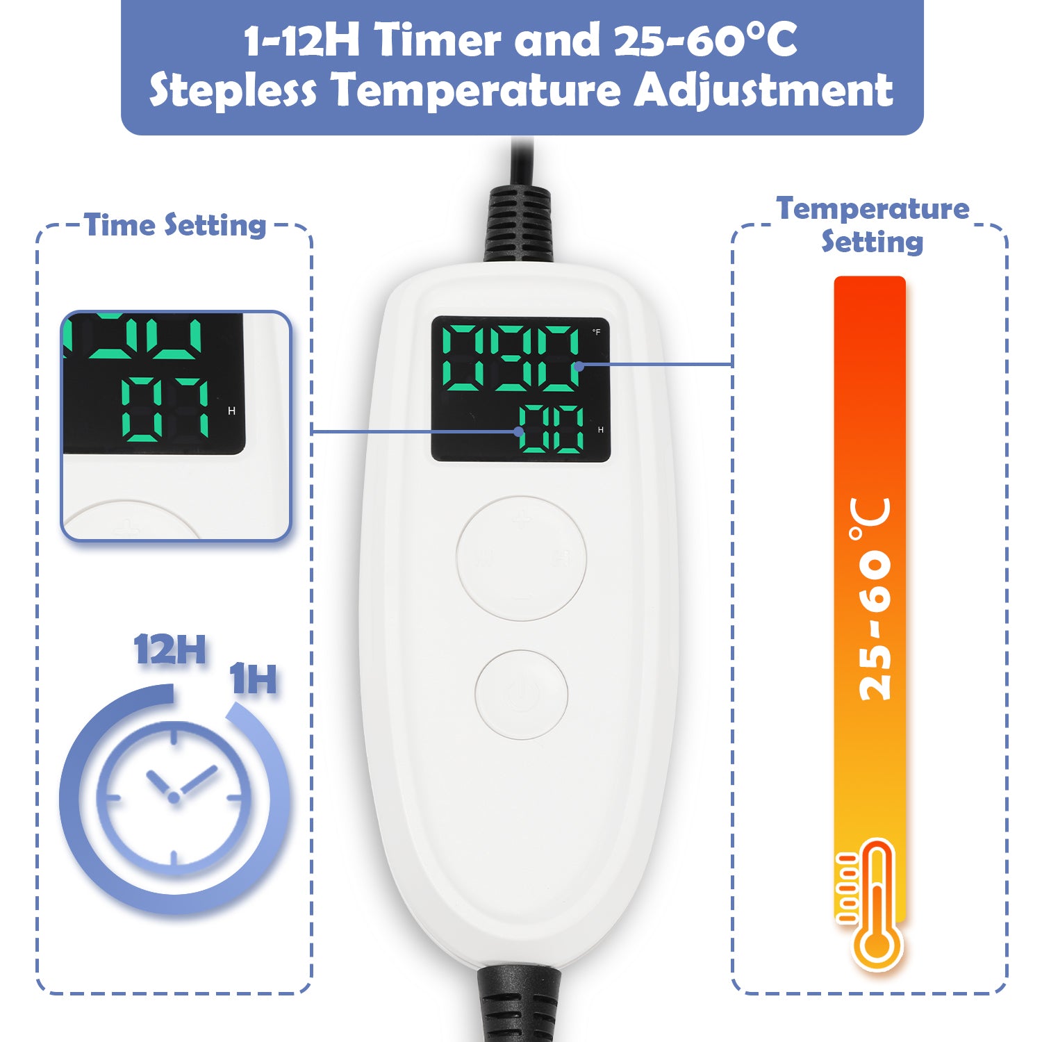 【Freiheit bei der Temperaturregelung】Unsere Heizkissen bieten eine stufenlose Temperaturregelung. Mit stufenlos einstellbaren Temperaturen zwischen 25 und 60 °C (Feineinstellung pro Grad) können Sie die ideale Temperatur für Ihr Haustier wählen und sicherstellen, dass es sich immer wohl fühlt.