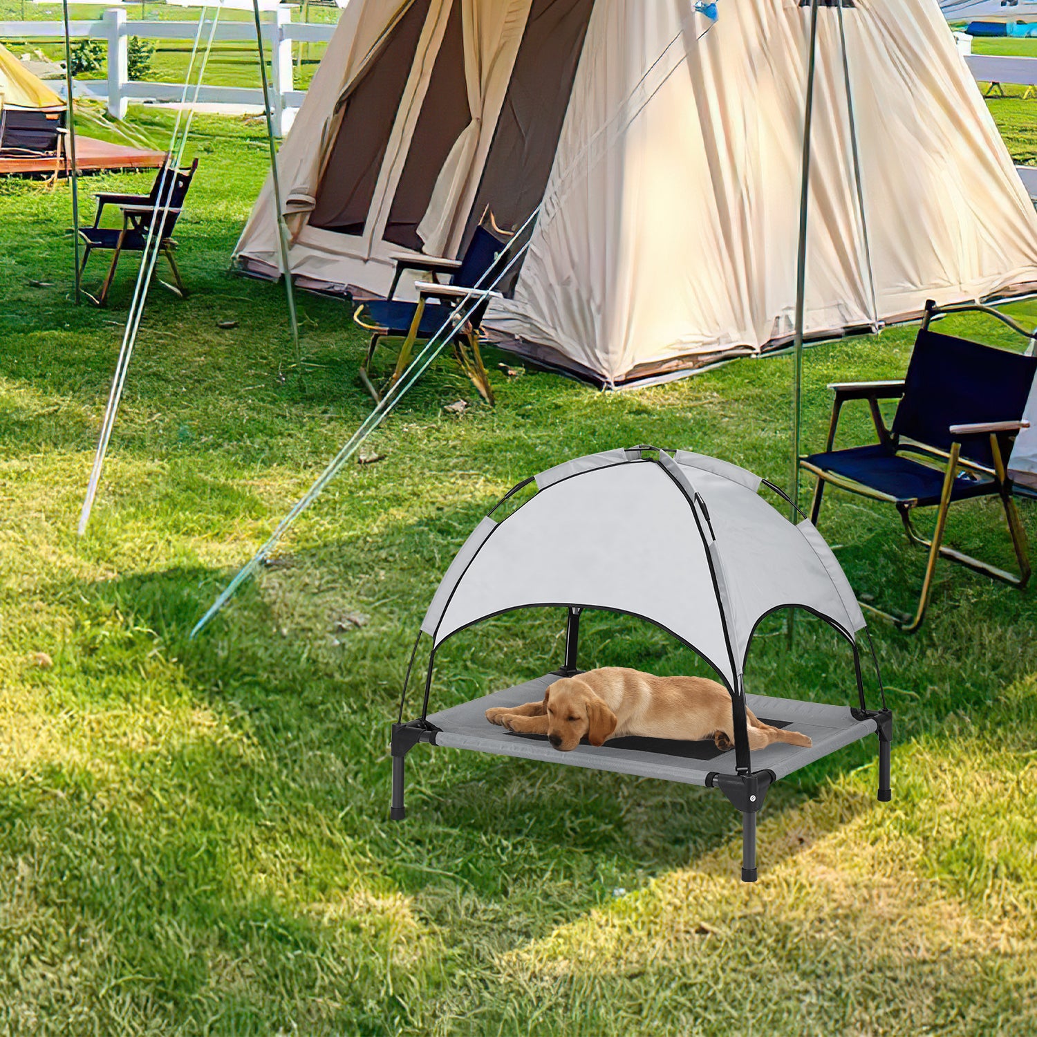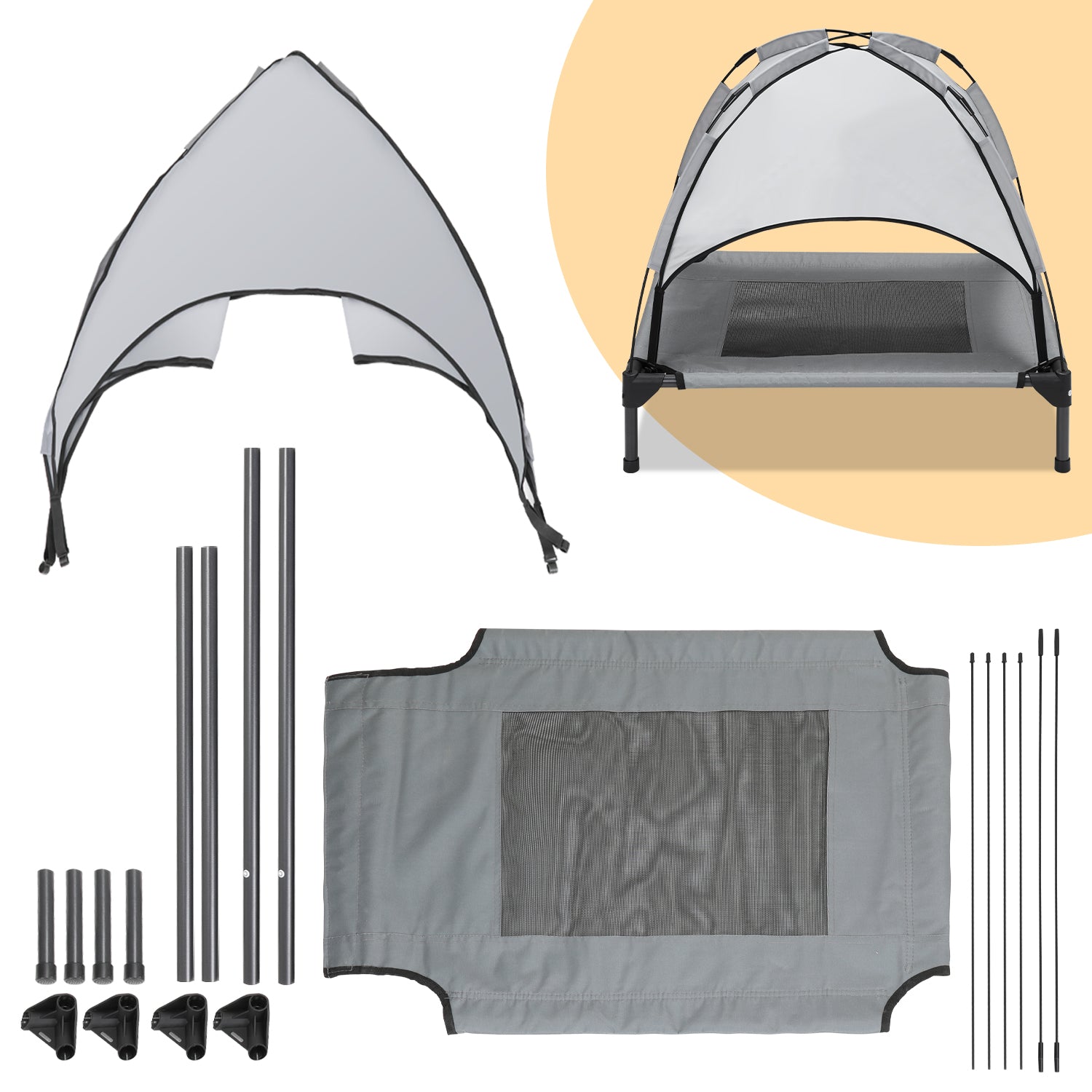 【Mit Abnehmbarem Baldachin】Das Hundebett mit Dach schützt den Hund vor Regen und Sonneneinstrahlung. Das Bett befindet sich 19 cm über dem Boden, was eine bessere Luftzirkulation unter dem Hund ermöglicht und den Hund im Sommer vor Überhitzung schützt. Wenn das Baldachin abgenommen wird, kann die Hundeliege auch als normales Bett gezählt werde.