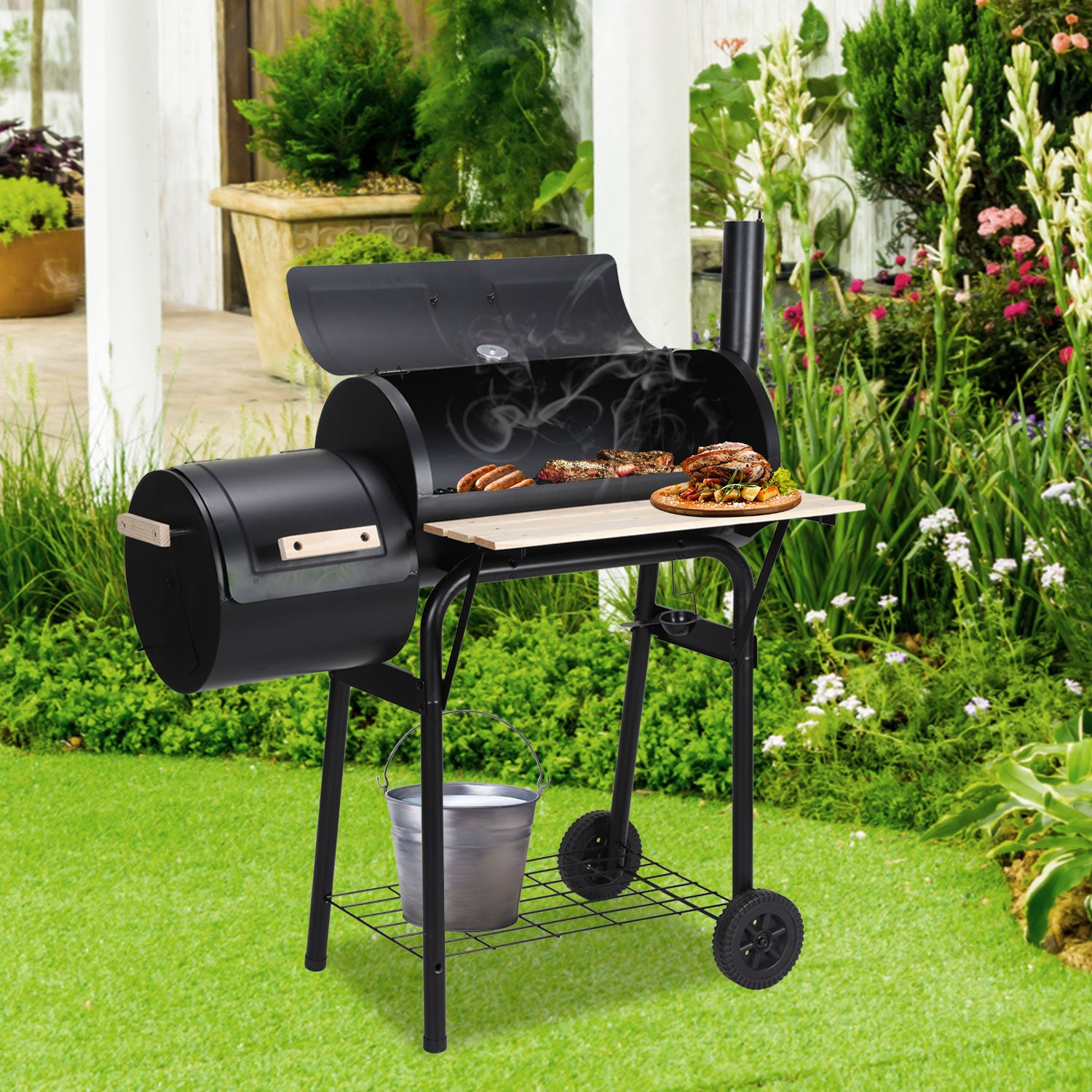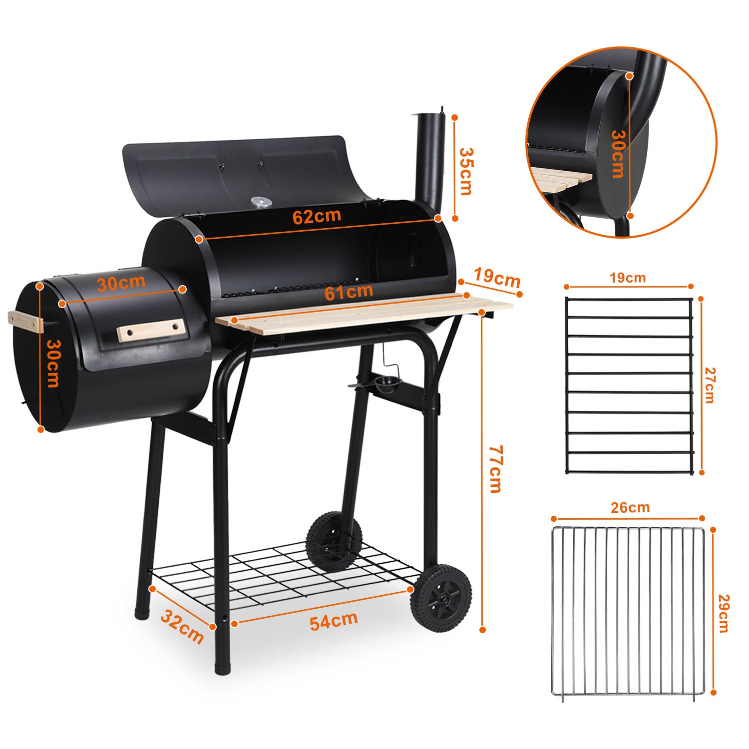 Flexible Anpassung: Die Lüftungsöffnungen und der Abluftschornstein des Holzkohlegrills sind einstellbar, um die optimale Temperatur im Grill zu steuern. Das Grill mit Thermometer misst die Hitze präzise, und mit dem Räuchergrill können perfekte Grill-Ergebnisse erzielt werden. Eine einfache Anpassung ermöglicht es, das Räucherofen und Grillen zu genießen.