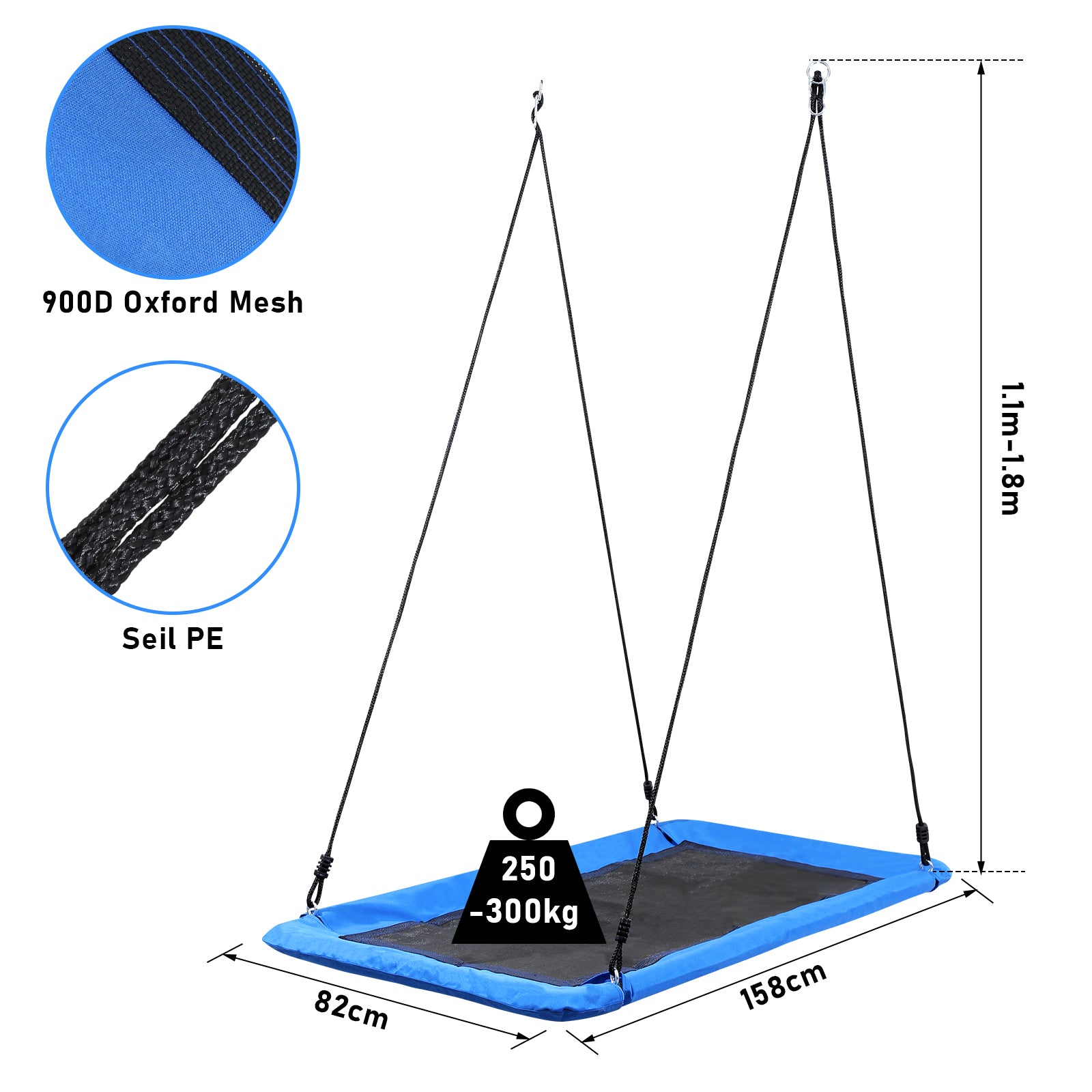 Die Schaukel ist höhenverstellbar- Das Seil ist zwischen 110cm und 180cm verstellbar. Mit hoher Belastbarkeit können Sie die Schaukel auch problemlos benutzen.