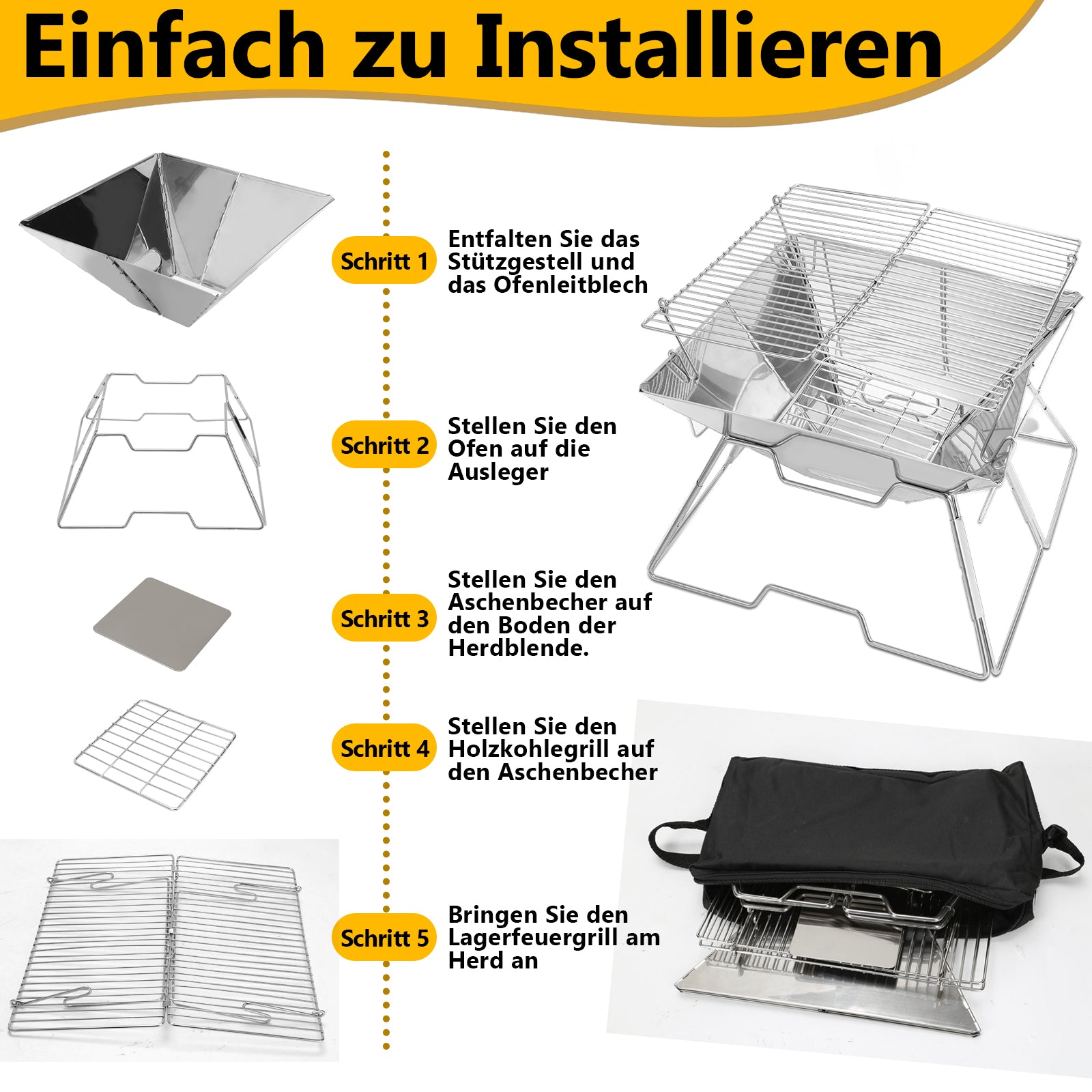 【Multifunktionales BBQ】Kompaktes Design für kleine Partys und Zusammenkünfte unter Freunden. Geeignet für Aktivitäten im Innen- und Außenbereich, wie z. B. Grillen im Garten, Heizen des Kamins, Campingausflüge, Angeln, Picknicks, Wandern, Kochen auf offenem Feuer, usw.