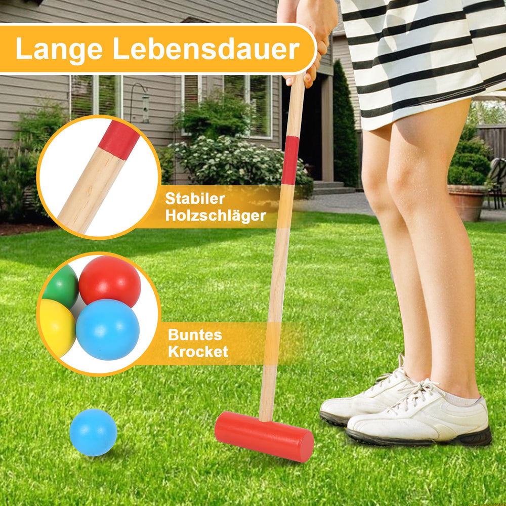 Hochwertige Materialien: Die Krocketschläger sind aus hochwertigem Holz gefertigt und verfügen über eine wetterfeste Oberfläche, um Langlebigkeit und Robustheit zu gewährleisten. Die stabile Eisentür sorgt für optimalen Halt und garantiert langanhaltenden Spielspaß.