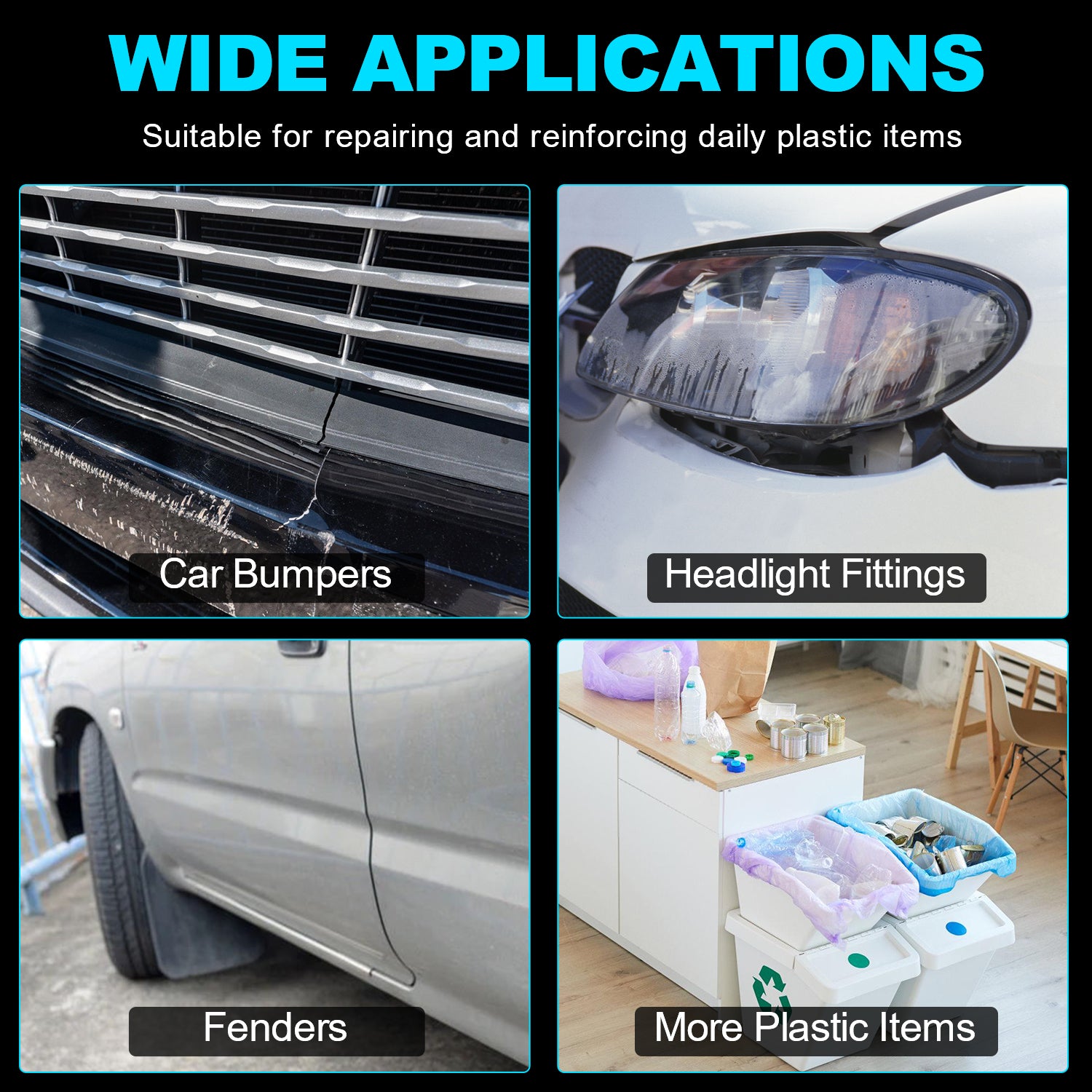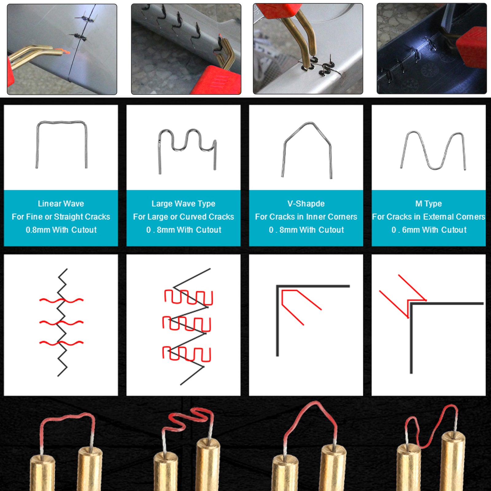 Breiter Anwendungsbereich: Das Kunststoffschweißgerät-Reparaturset eignet sich nicht nur für Stoßfänger, Armaturenbrett, Lampenfassungen, Kühler und andere Kunststoffteile im Auto, sondern auch für die Reparatur von Rissen in den meisten Kunststoffmöbeln des täglichen Lebens.