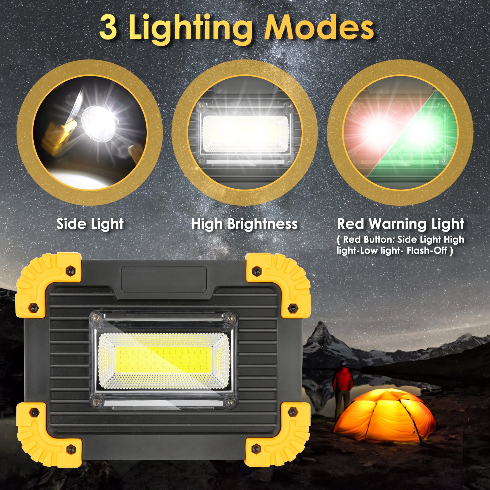 【3 Einstellbare Beleuchtungsmodi】Tragbare outdoor LED campinglampe kann Kaltweiß Licht und 3 Beleuchtungsmodi liefern: Hohe Helligkeitsmodus, Seiten Scheinwerfer, Strobe-Modus (Abwechselnd Rot und Grün). Das Arbeitslicht kann alle Situationsbedürfnisse erfüllen und stellt sicher, dass es den Notfall bewältigen kann.