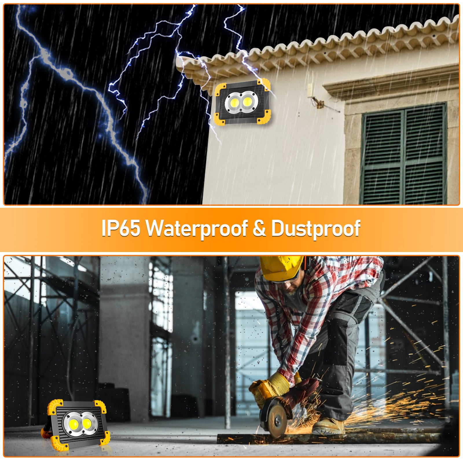 【Robust Wasserdicht】Die wiederaufladbare led strahler akku ist verschleißfest und wasserdicht. Die sehr gut geeignet für Outdoor-Aktivitäten bei leichtem Regen und Schnee. Es kann als Notstrom, LED-Gebäudescheinwerfer, Campinglicht, Suchscheinwerfer im Freien, Notlicht verwendet werden und Werkstattlampe.Wirf es nicht ins Wasser.