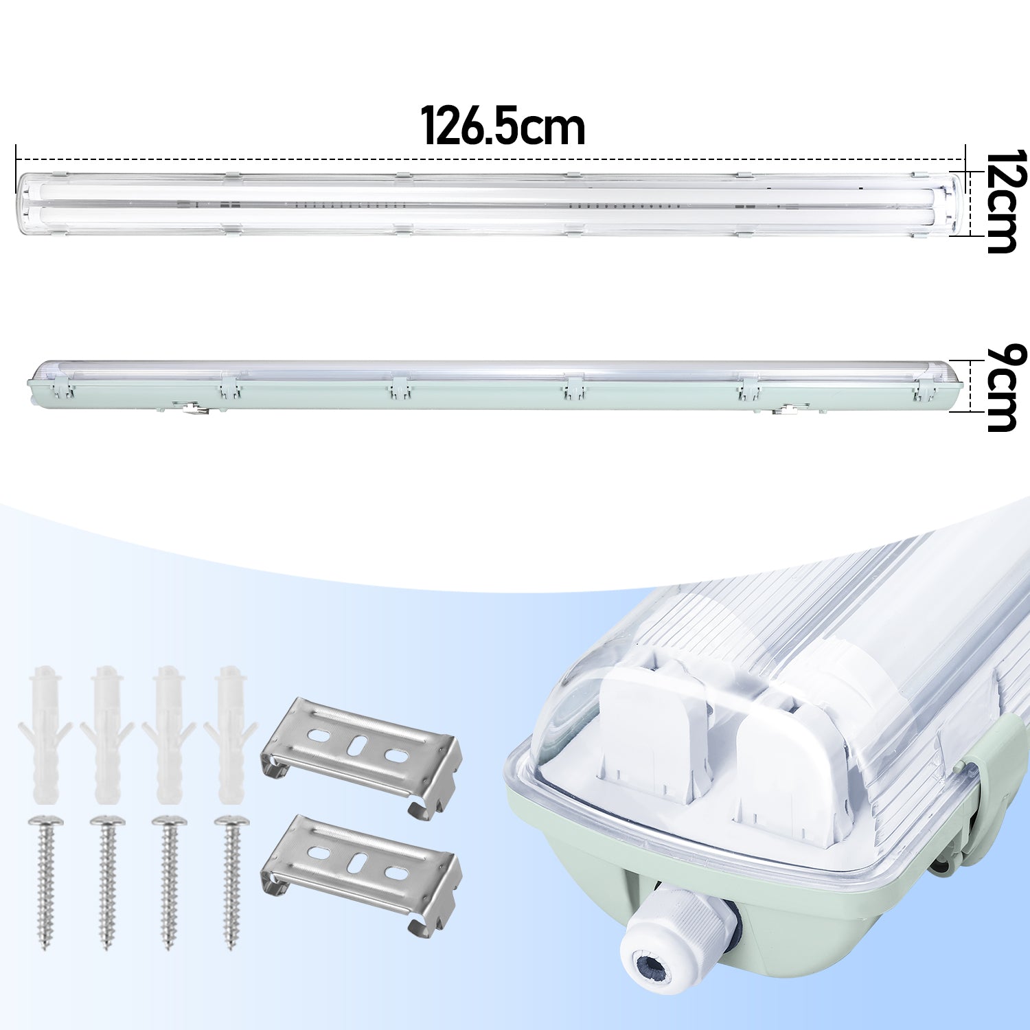 Hocheffiziente Lampen: 120 cm 2 Röhre LED feuchtraumleuchte sind sehr effizient, diese Röhren verbrauchen 2X18 Watt und erzeugen 3600 Lumen, was LED Leuchtstofflampen zu einer Alternative zu 360 Watt Leuchtstofflampen macht. Nicht dimmbar.