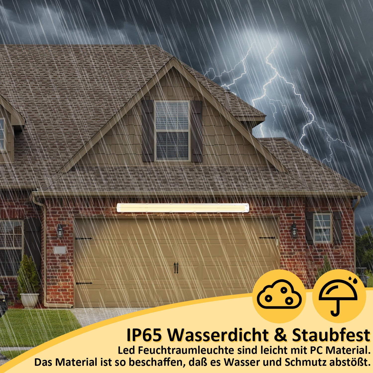 50000H Lange Lebensdauer: Die LED Technologie gewährleistet eine super lange Lebensdauer 50000H der Lampe. Im Vergleich zu herkömmlichen Neonlampe müssen Sie die LED Feuchtraumleuchte seltener austauschen. Zusätzlich ist sie praktisch wartungsfrei, was Ihnen Zeit und Mühe erspart.