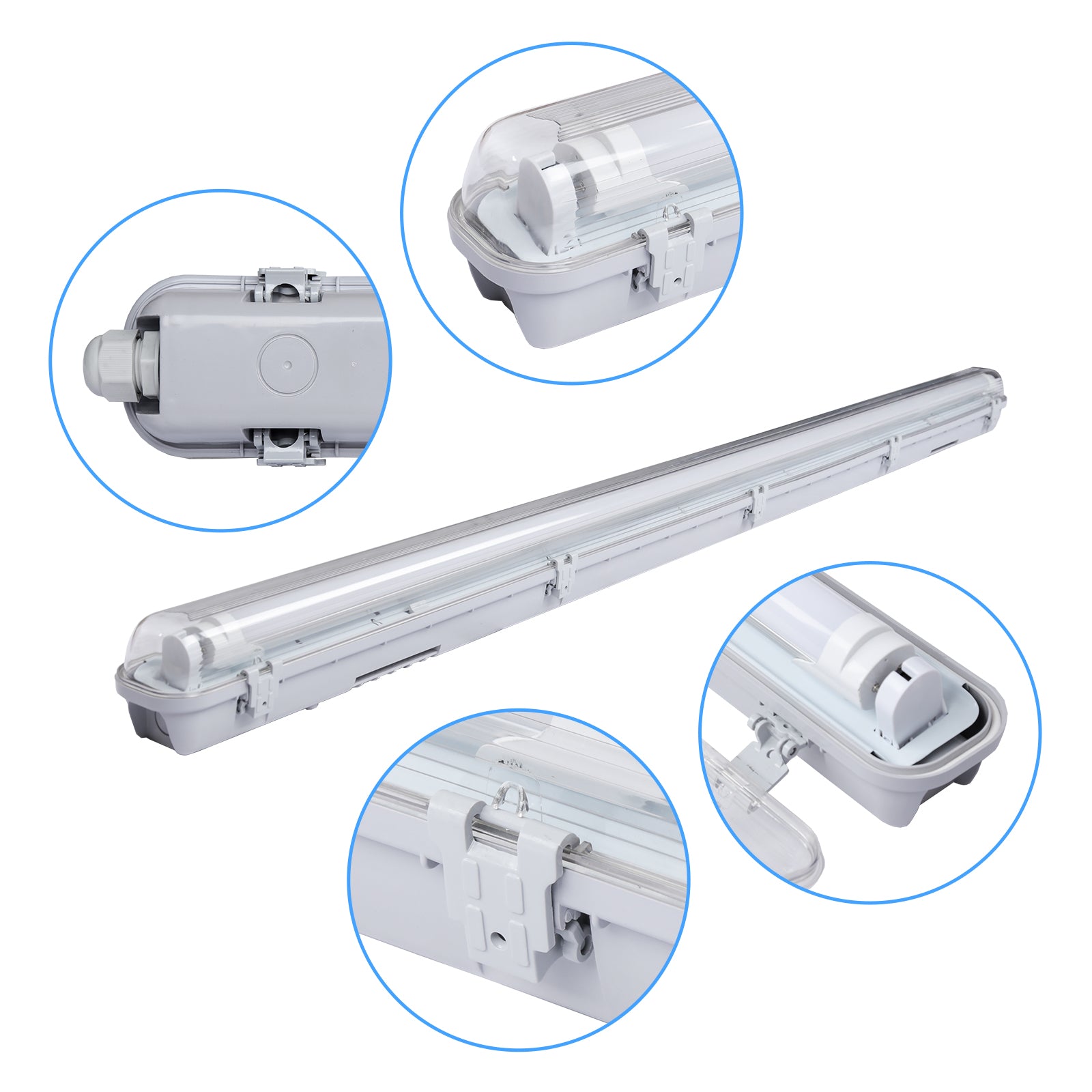 Vielseitige Anwendung: Dank ihres robusten Designs eignet sich die Feuchtraumleuchte für verschiedene Einsatzbereiche, sowohl in privaten als auch gewerblichen Umgebungen. Sie kann in Werkstätten, Fabriken, Lagerhallen, Badezimmer, Waschküchen, Garagen und Keller werden.