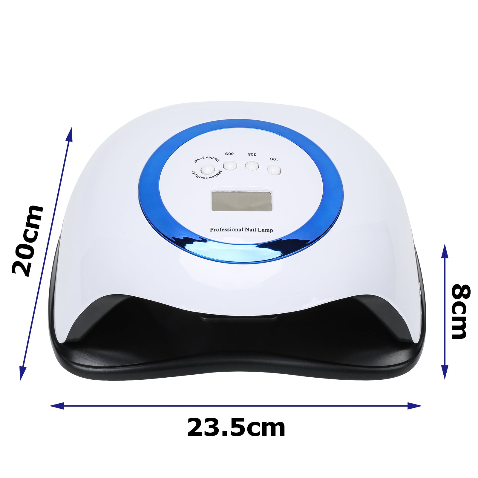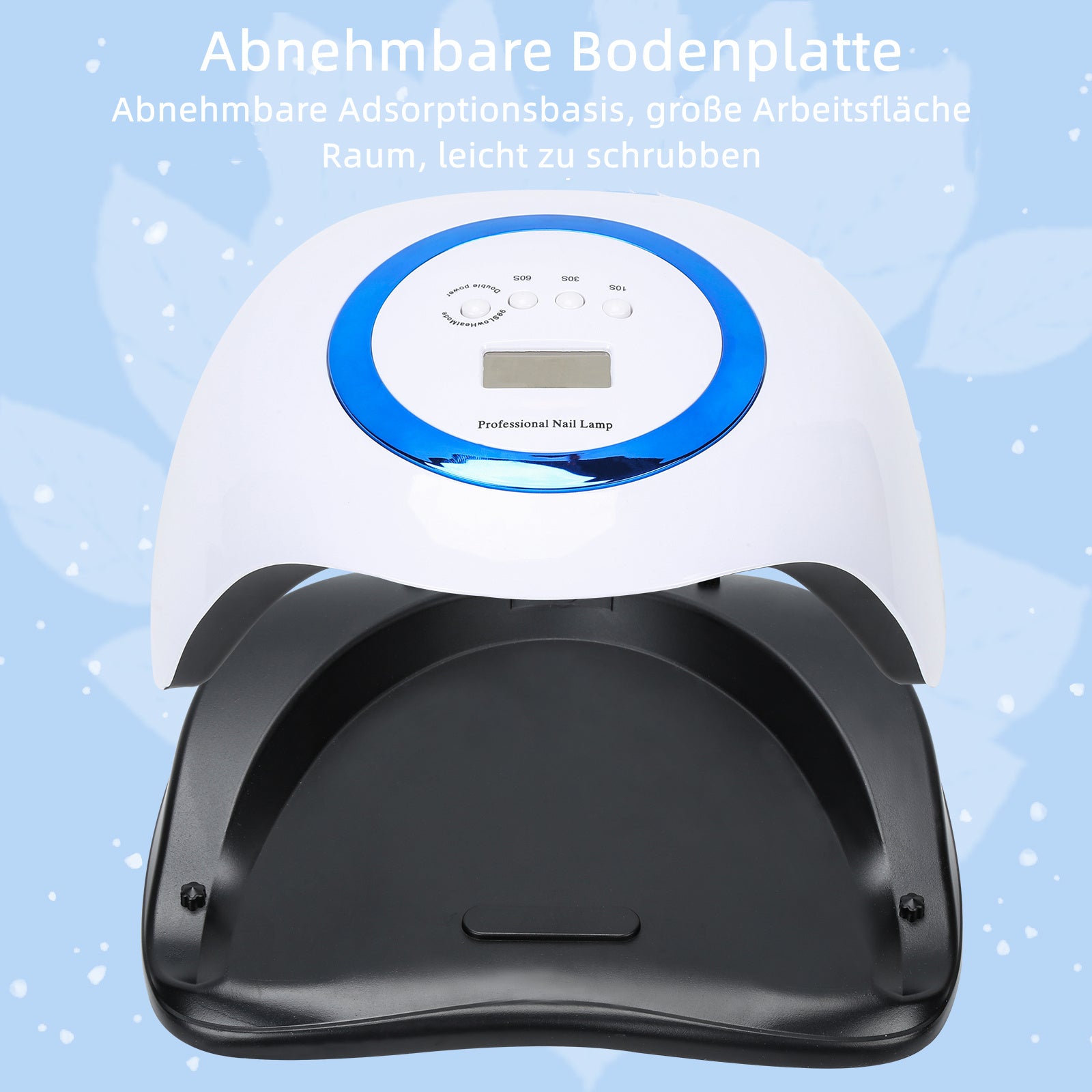 【Humanisiertes Design】Das Griffdesign der Nagelmaschine ermöglicht es Ihnen, sie leicht zu bewegen. Die Raum für die Finger ist groß genug, sodass alle fünf Nägel in einem Durchgang getrocknet werden können. Darüber hinaus kann das Gerät problemlos den Platt entfernen, um genug Platz für den Fuß zu schaffen und können die Zehen angenehmer verschönert werden. Unser Nageltrockner mit 180-Grad-Licht kann die ganze Hand oder den Fuß auf einmal trocknen, inkl. des Daumens, und Aushärten an den Seiten ist auch kein Problem.