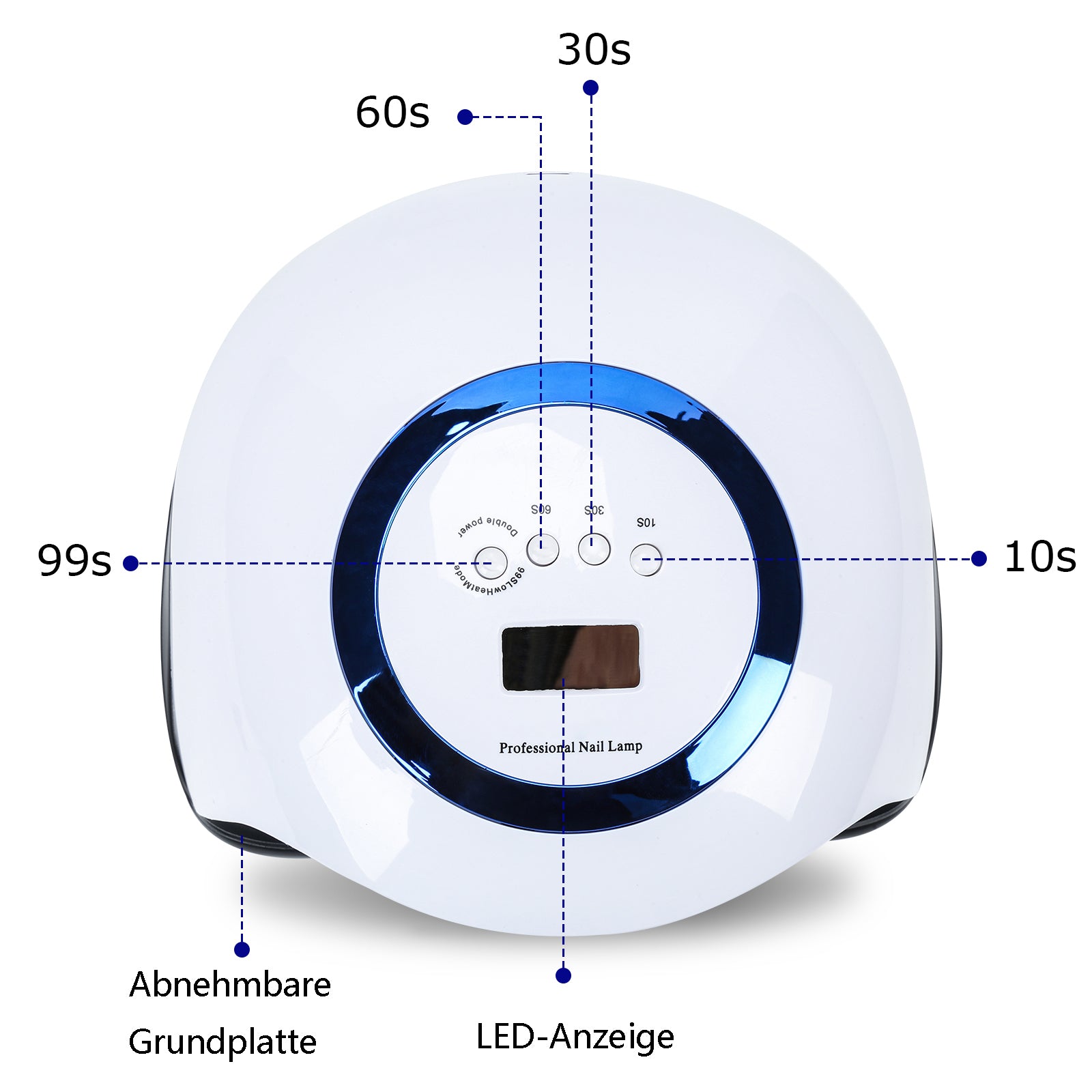 【4 Timer-Modi & Automatischer Sensor】Das UV Nageltrockner für Gel Nagellack verfügt über vier Tasten 10s/30s / 60s / 99s, um die Trocknungszeit auszuwählen, die dem ausgewählten Nagellack am besten entspricht. Die UV-LED-Nagellampe nutzt das Smart-System, auto-Sensor zum Ein- und Ausschalten ohne Tastendruck.