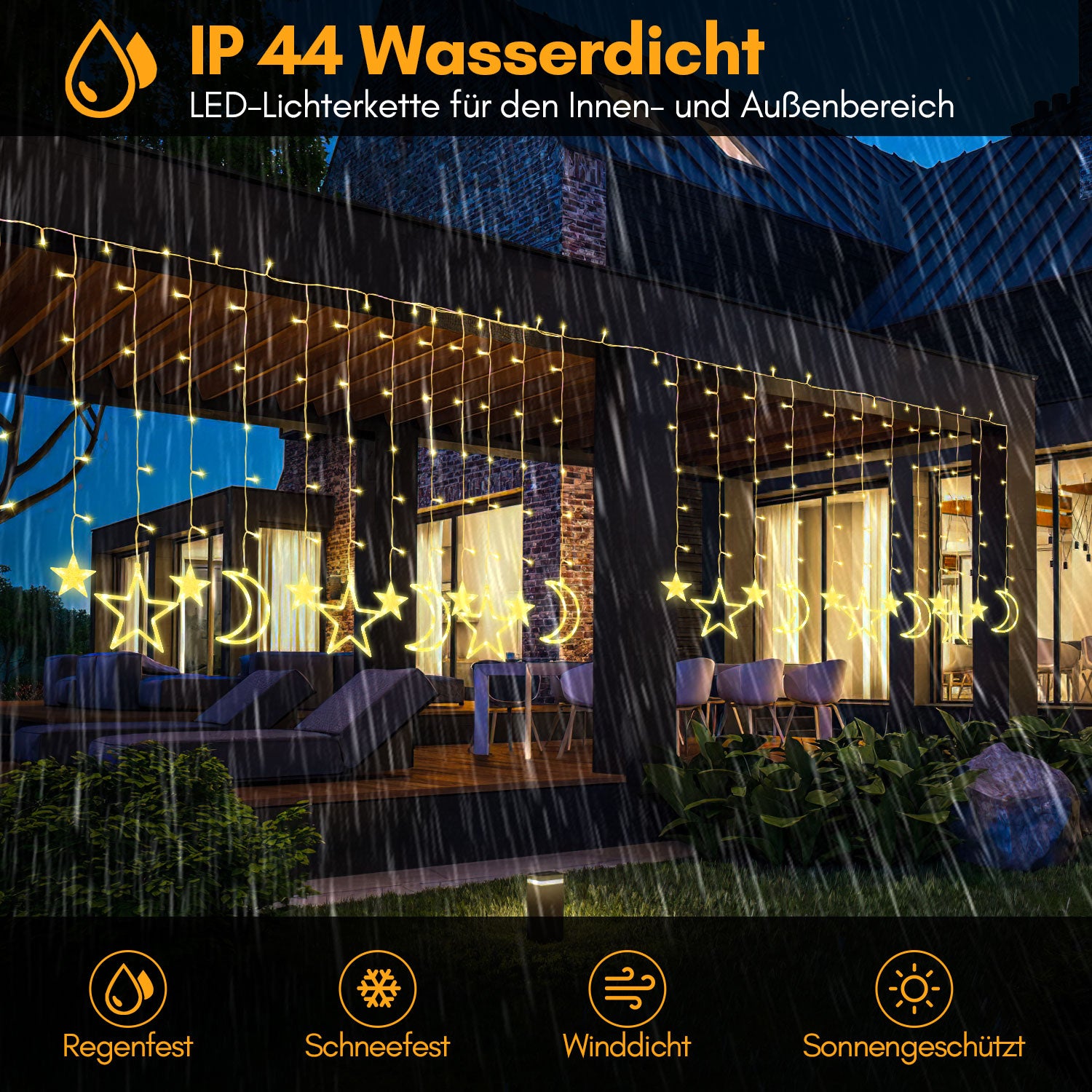 [Wasserdicht & Vielseitig einsetzbar] IP44 wasserdicht für sichere Nutzung im Innen- und Außenbereich. Ideal zum Aufhängen an Wänden, Fenstern, Türen, Vorhängen, Pavillons, Treppenhäusern und Weihnachtsbäumen. Perfekt für Schlafzimmer, Hochzeiten, Esszimmer und Gartenpartys.