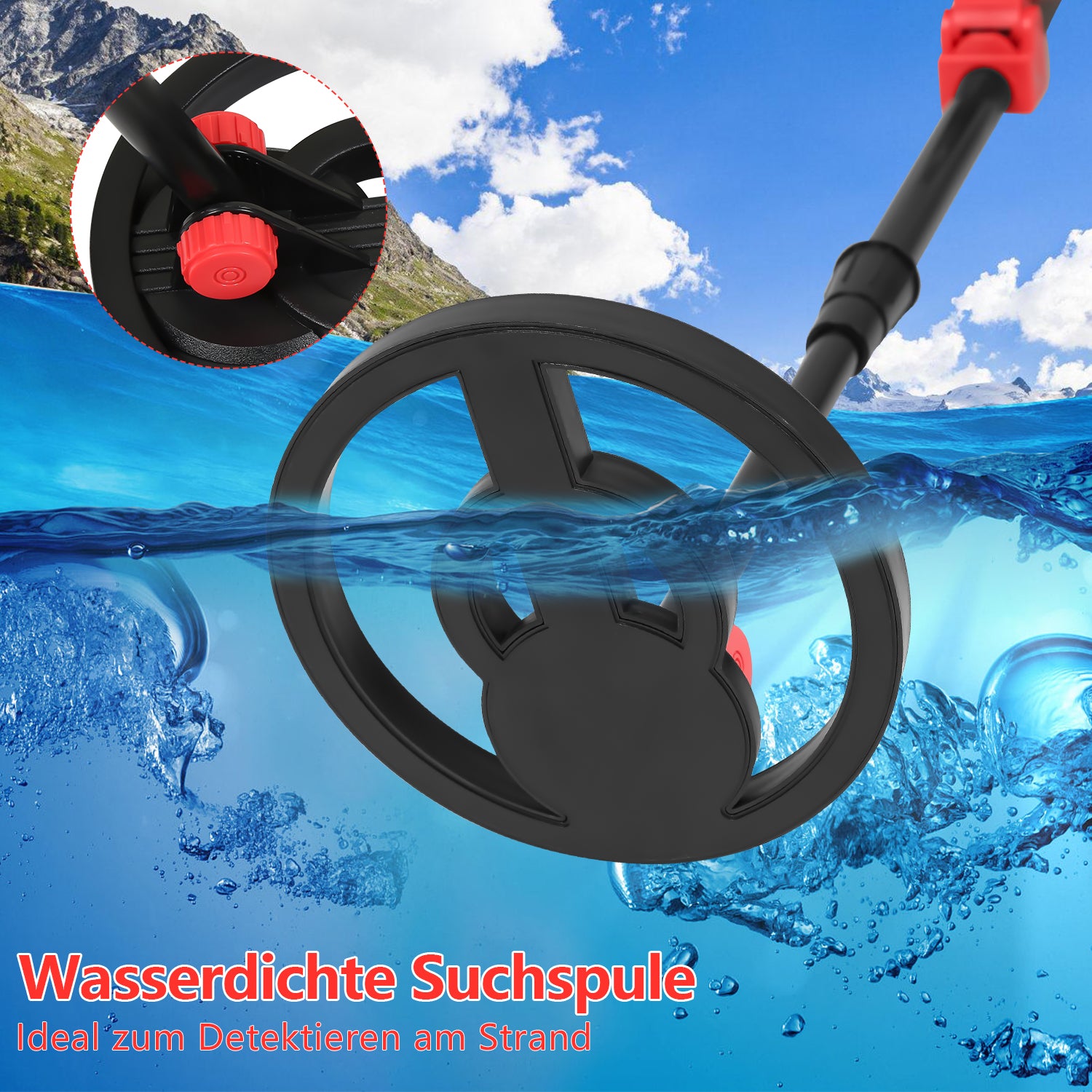 【Wasserdicht】Mit Wasserdichte Suchspule und einstellbare Schaft , sie können in den flachen oder flachen Gewässern erforschen. TIPPS: Detektionsscheibe ist wasserdicht, aber die Display sind nicht wasserdicht.