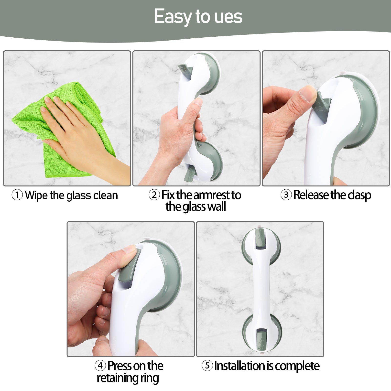 🛁 Der Griff ist Ideal für Sicherheit in Sanitäranlagen, Badewannen, Duschkabinen, neben der Toilette, in der Nähe von Treppen oder neben Ihrem Sessel. anzubringen auf allen glatten Oberflächen.