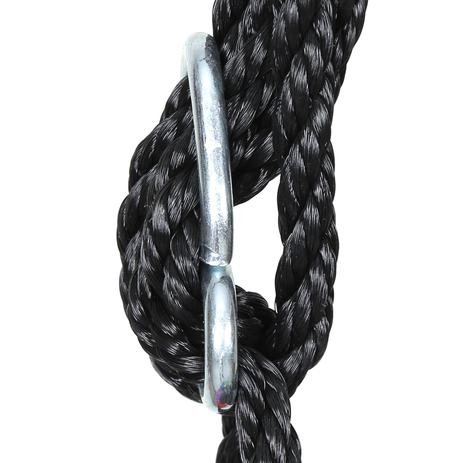 Sicherheit: Runder Rahmen aus Eisen, verzinkt für deutlich verbesserte Rostbeständigkeit. Die Kanten sind für zusätzliche Sicherheit dick mit EVA-Gewebe umwickelt. Seil: 1cm dickes PE, Stahlrohr: Ø2,5cm, 1mm dick, Ring: Ø5,5cm, 0,8cm dick, mit verstellbarem Ring.