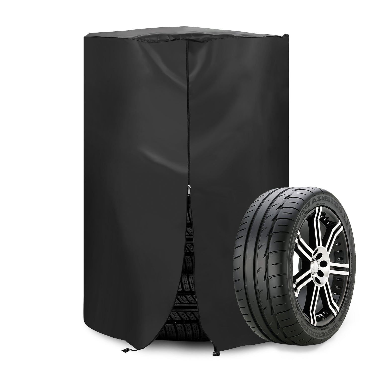 【Schützen Sie Ihre Reifen】Die Reifenabdeckung ist aus wasserdichtem und verschleißfestem, silberbeschichtetem Material gefertigt; mit Präzisionsnähten, schwarzer Zierleiste und Reißverschluss sowie einem Tunnelzug an der Unterseite, um die Reifen fester zu machen.