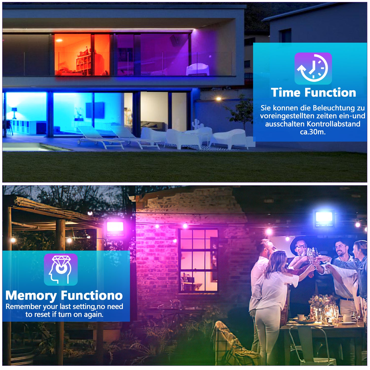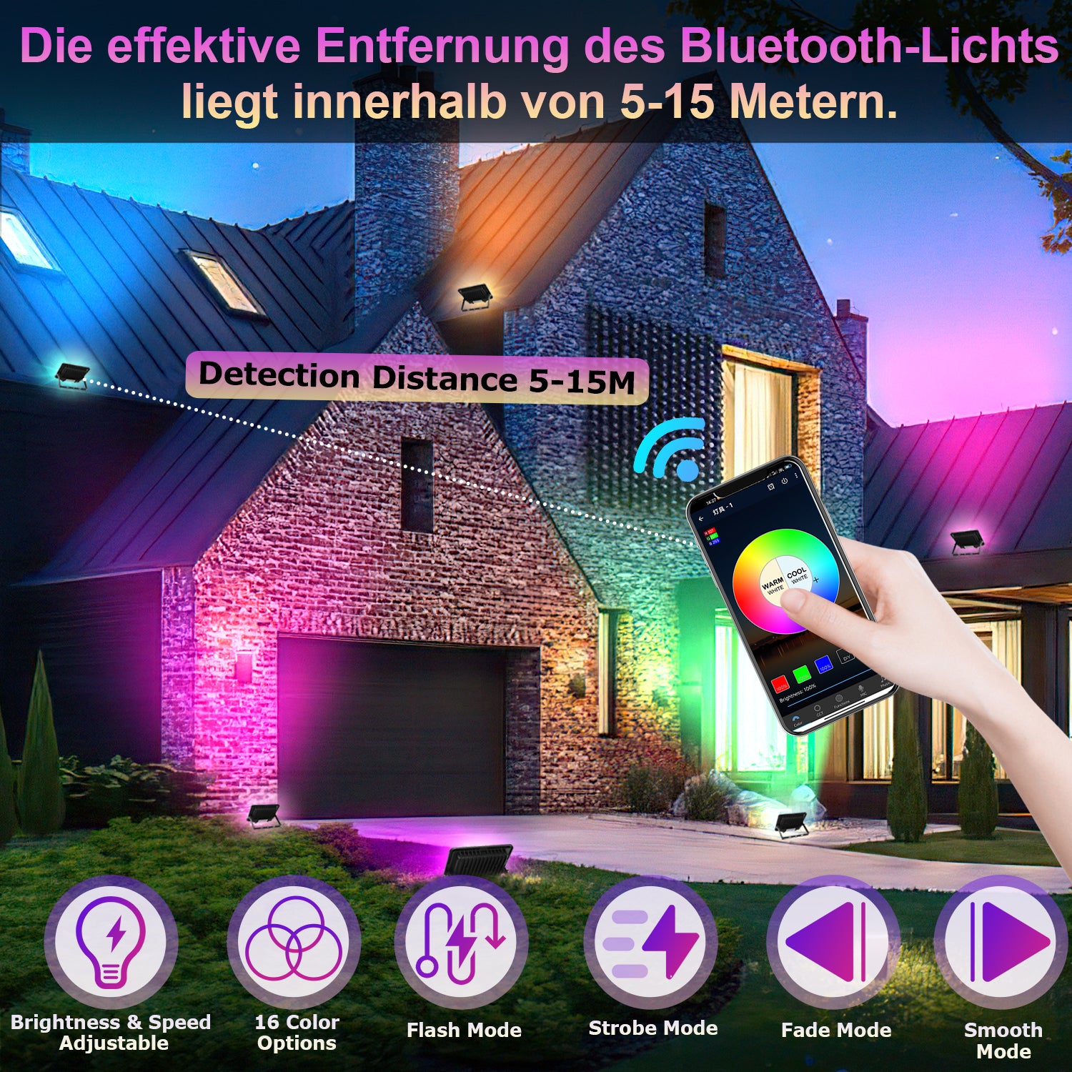 Intelligente Steuerung: Unsere RGB Flutlichter bieten intelligente Farbänderung über eine Smartphone-Bluetooth-App. Mit 16 Mio. Farben, 20 Modi, Musikrhythmus und Zeitschaltung sind sie ideal für Innen- und Außenbeleuchtung.