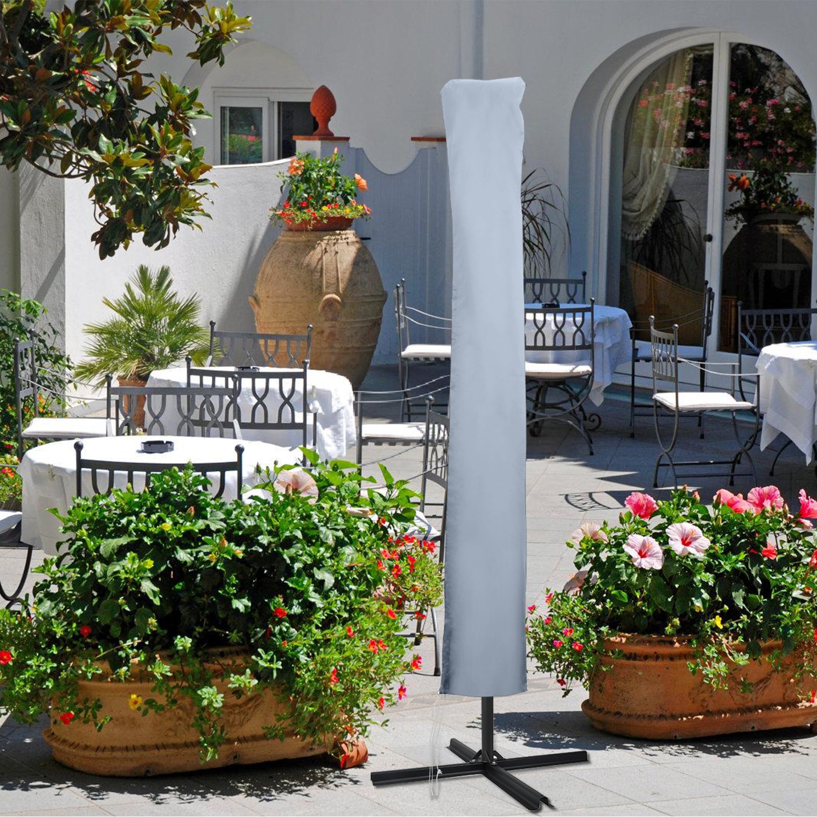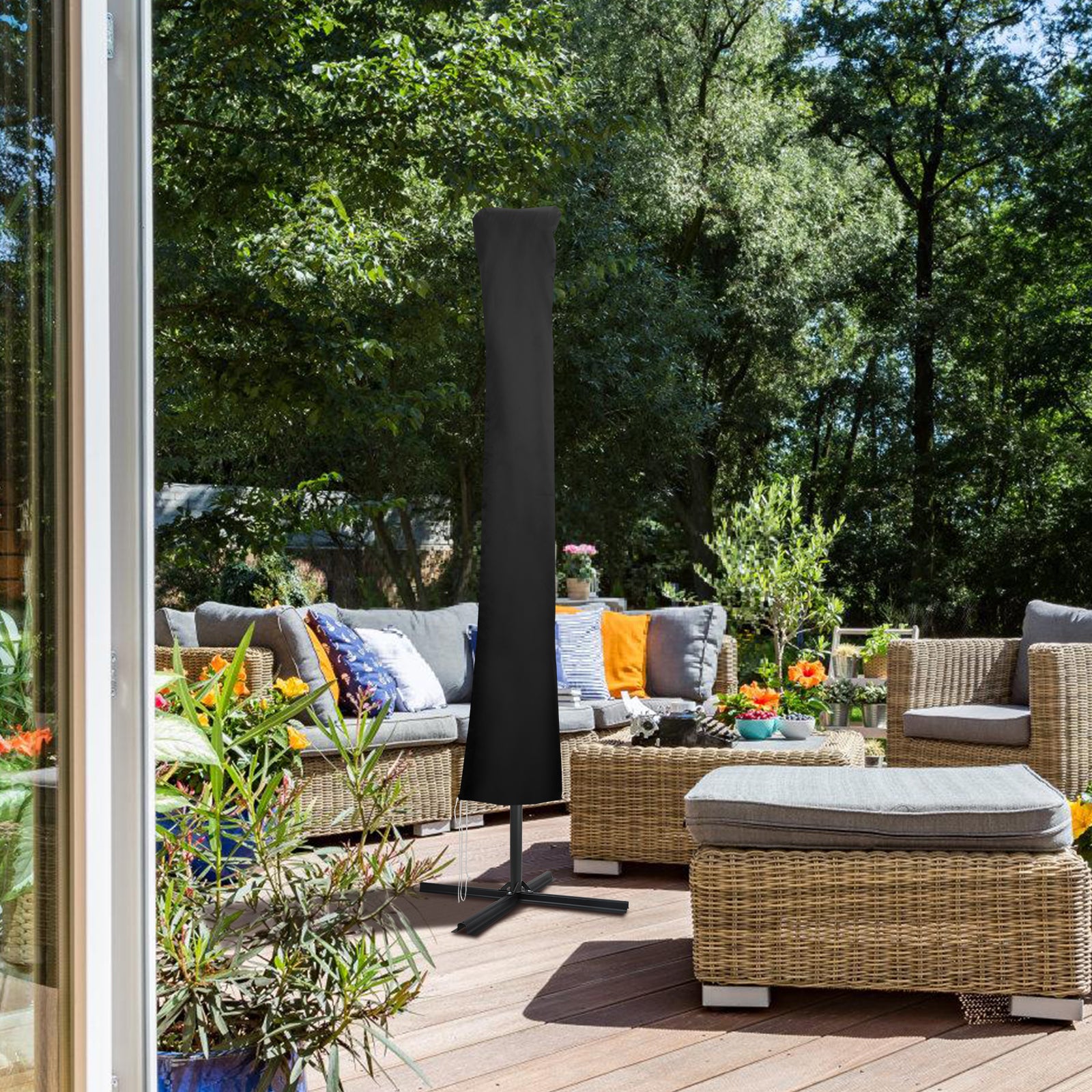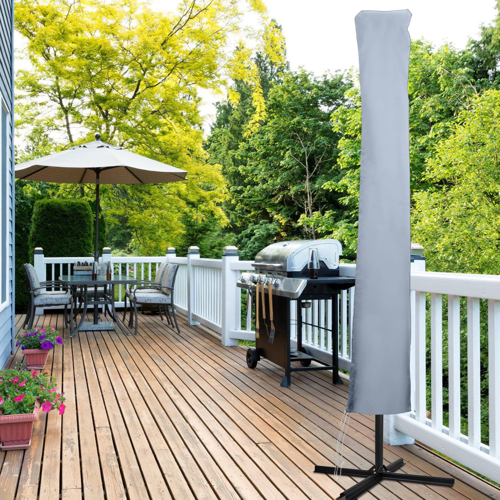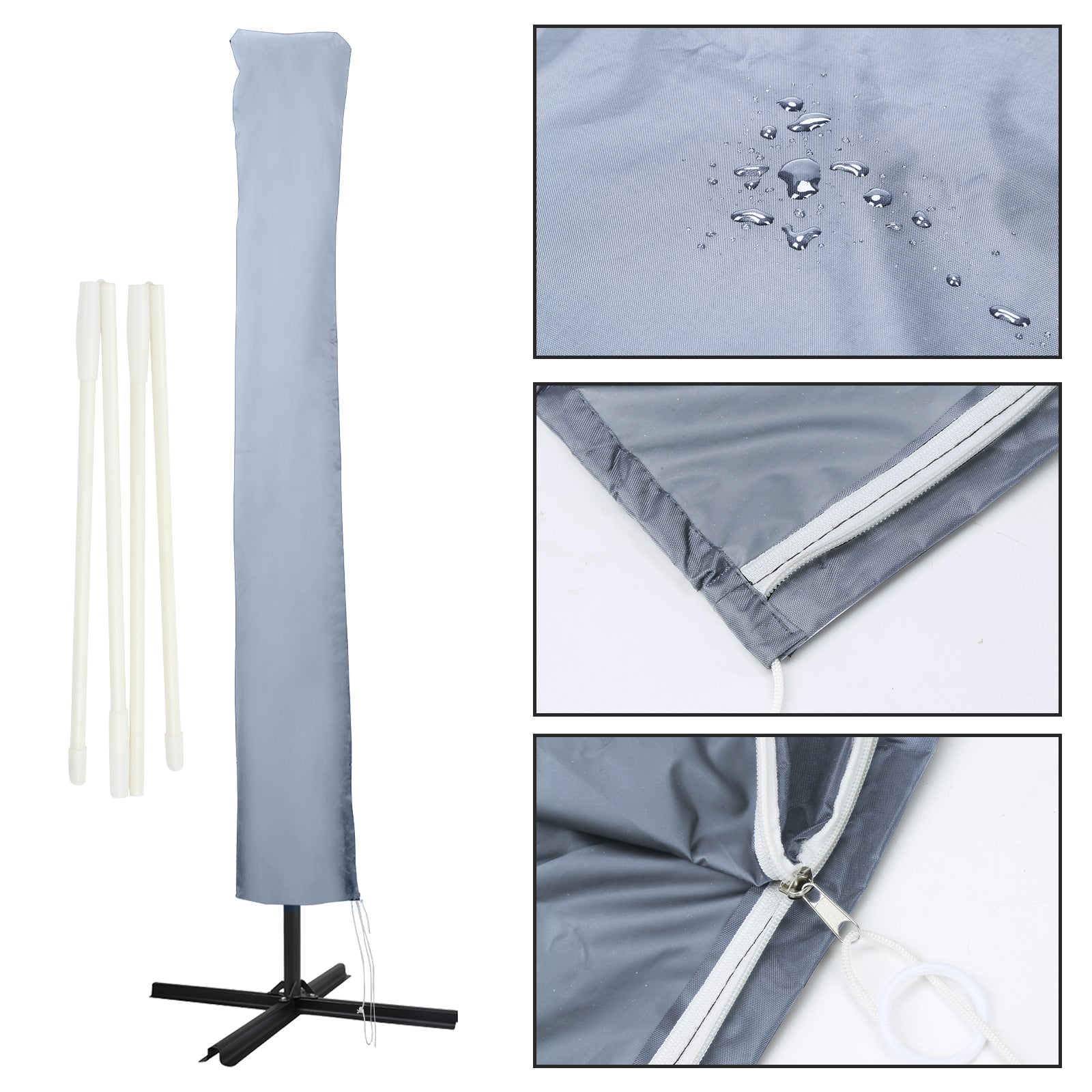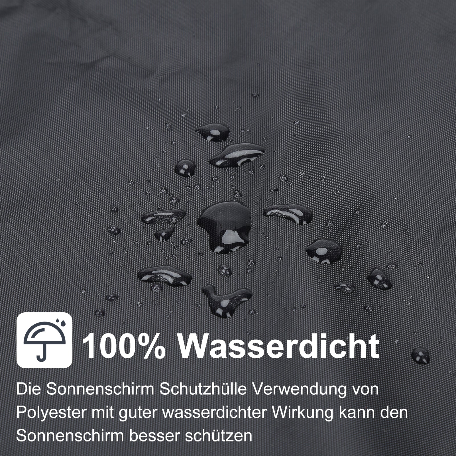 【Hochleistungs-wasserdichtes Material】Diese Sonnenschirmabdeckung besteht aus Polyester und ist wasserdicht, UV-beständig, reißfest und lichtbeständig. Sie schützt Ihren Sonnenschirm besser vor rauen Umgebungen wie starkem Sonnenschein und Regen , Schnee, Staub und mehr.