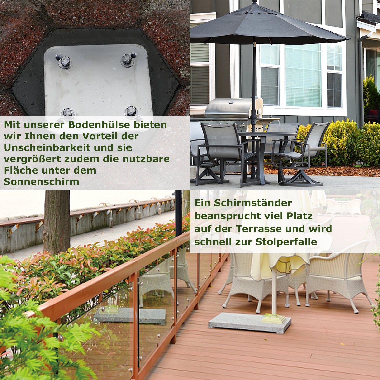 【Robust und langlebig】Durch die einbetonierte Bodenplatte kann auch sehr großer Schirm fest fixiert werden. Es ist eine langfristige und zuverlässige Lösung zum Aufstellen von Ampelschirmen in Gärten und Terrassen .
