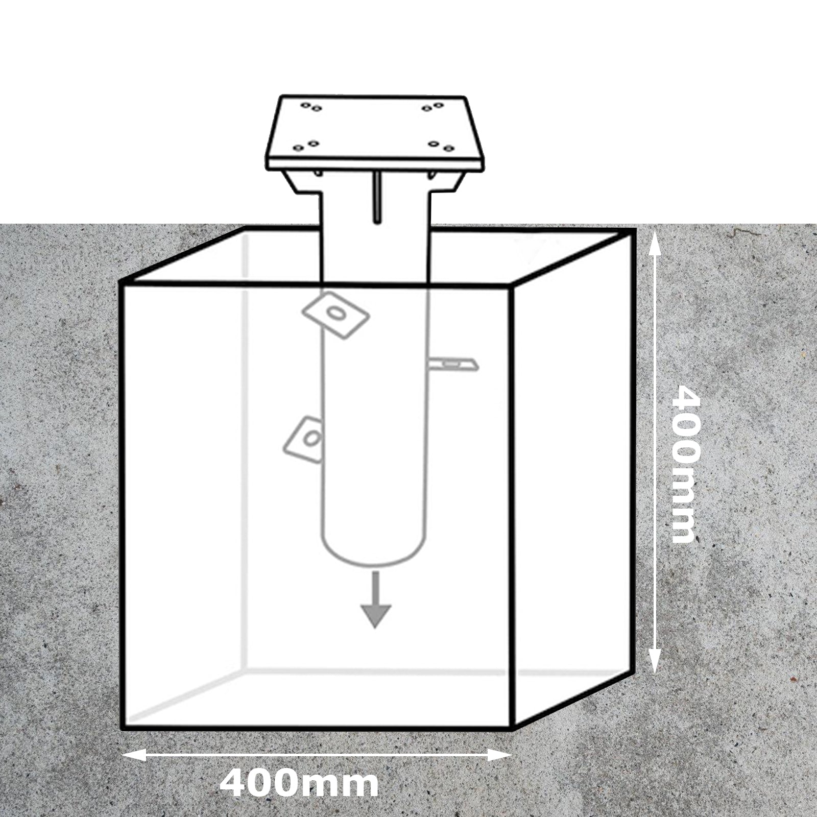 【EINFACH MONTAGE】Der Sonnenschirmständer wird einbetoniert und ein Bodenfundament von mindestens 40 x 40 x 40 cm ist nötig. Die Montageplatte ist ca. 16 x 16 cm und die Gesamthöhe ca. 40 cm. Folgen Sie einfach unseren Anleitungen und Sie können ihn sofort zusammenbauen.