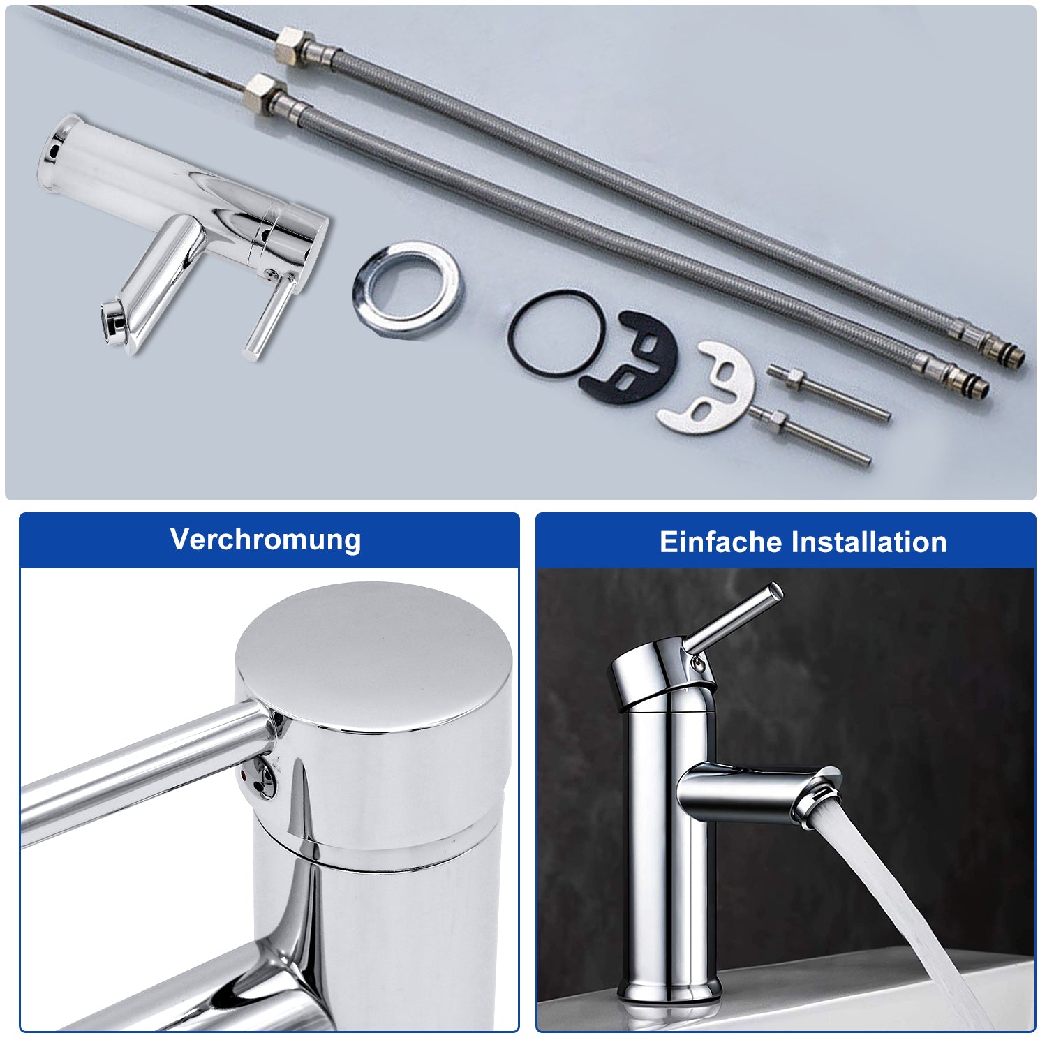 Unser Waschbeckenarmatur verwendet 3/8" Verbindungsrohre, die den europäischen Standards entspricht und für die meisten Waschbecken geeignet sind.