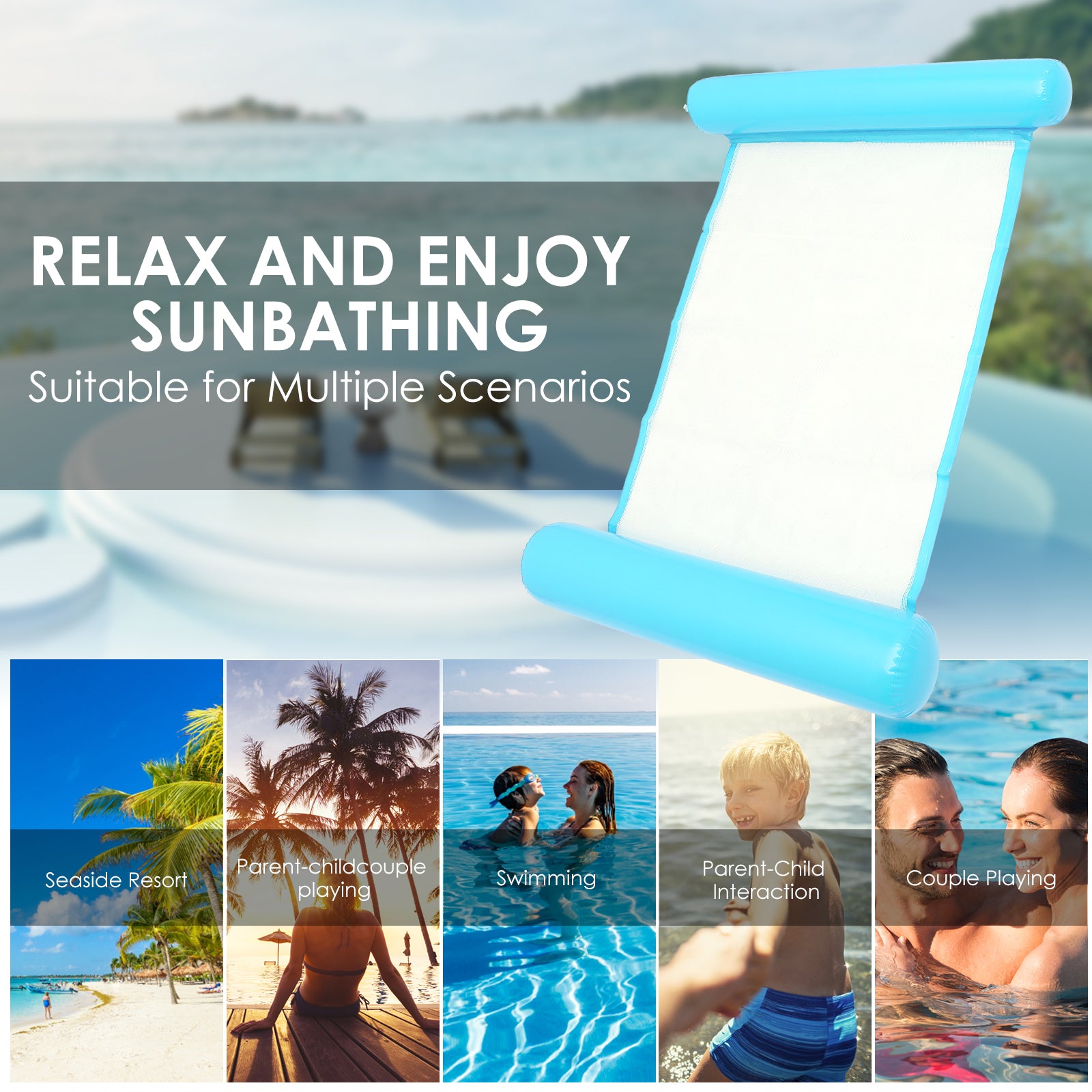 Entspannen und Genießen das Sonnenbadens:Entspannen Sie jeden Muskel in Ihrem Körper mit der schwimmenden Hängematte, der schwimmenden Kopfstütze und der Fußstütze, damit die Schwimmer stundenlang im Pool entspannen und jeden Moment Ihres Urlaubs genießen können.