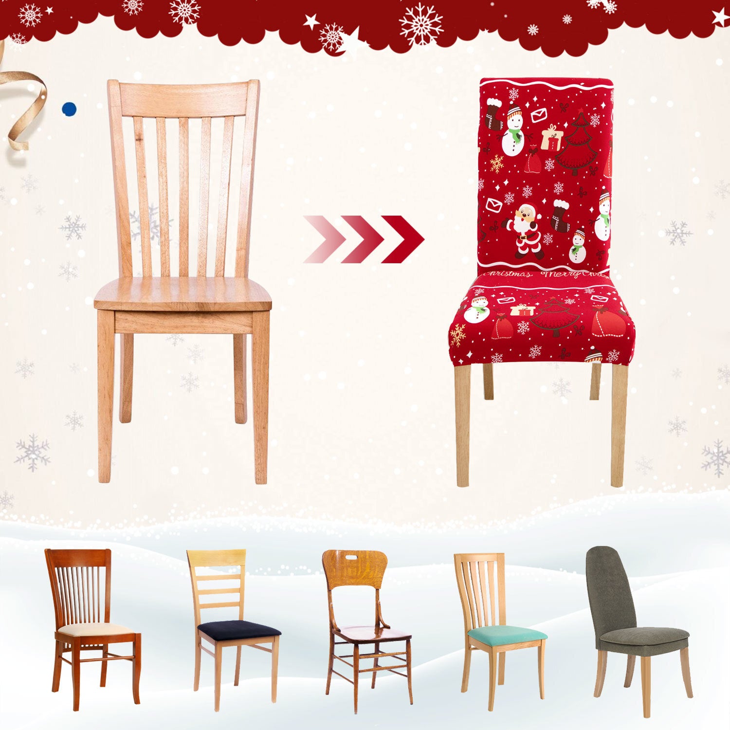 Universelle Sitzbezüge: Weihnachtliche Stuhlhussen Passend für die meisten Stuhlgrößen, Rückenlehnenhöhe: 45–65 cm, Sitzlänge und -breite: 38–45 cm. Bitte messen Sie Ihre Stühle vor dem Kauf.