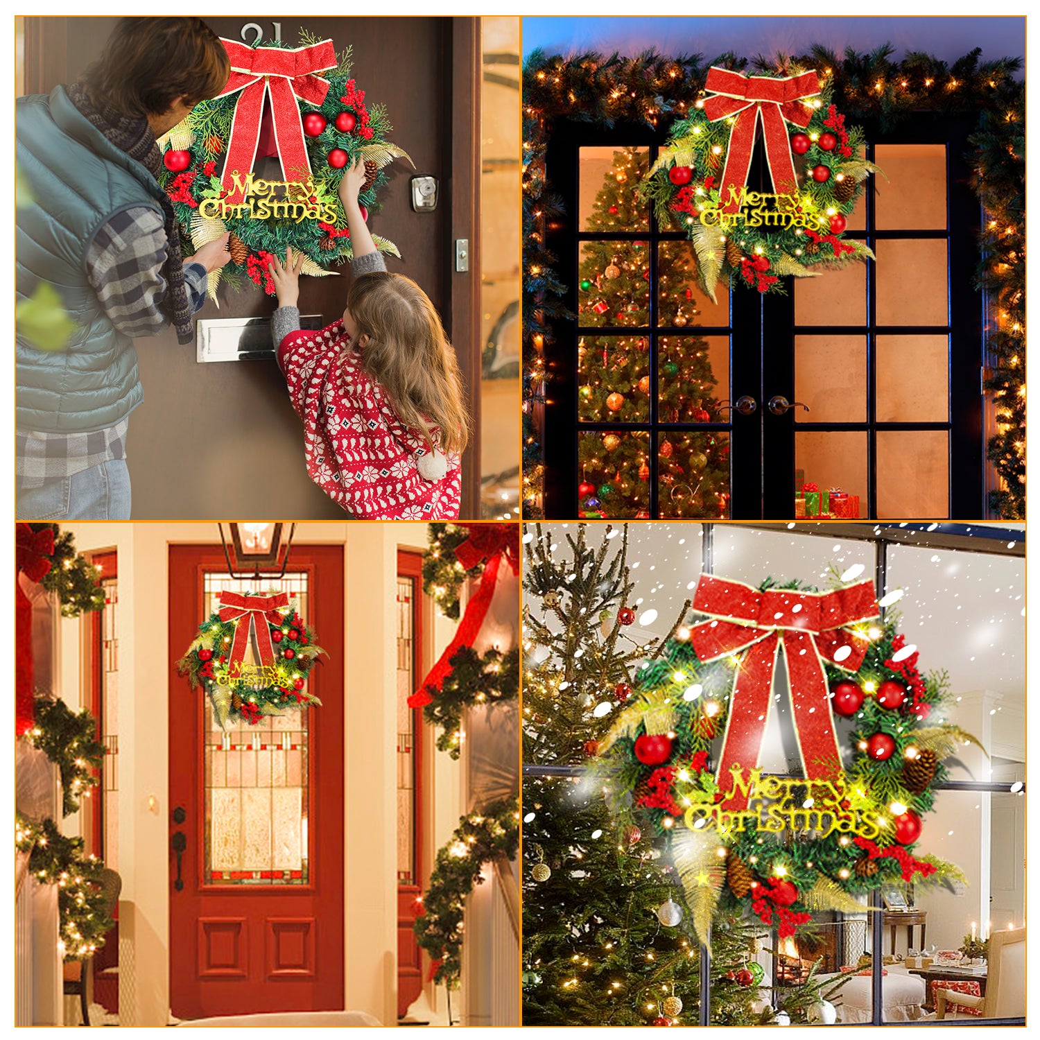 Einfache Montage: Unser Weihnachtskranz wird mit einem 15-Zoll-Haken geliefert, der keine Beschädigungen an Türen oder Fenstern hinterlässt. Sie können Ihr Zuhause problemlos schmücken und die mühelose Installation unseres Weihnachtskranzes genießen.